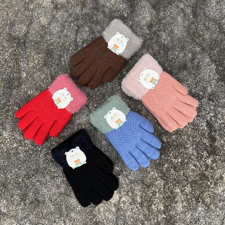 겨울 어린이 니트 더블 두꺼운 기모 4-8 세 따뜻한 귀여운 감기 방지 손가락 머리 입 패션 장갑 트렌디