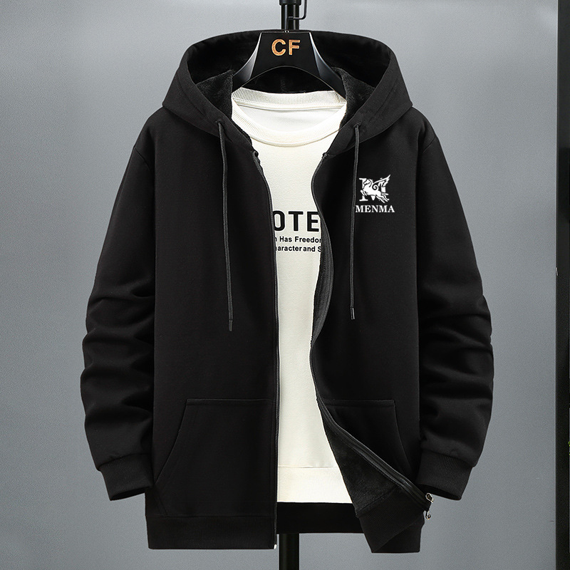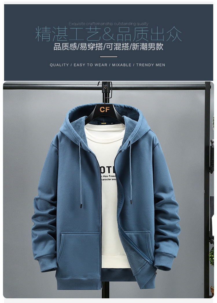 슈퍼 소프트 기모 후드 카디건 남자의 가을과 겨울 새로운 유행 재킷 플러스 플러스 사이즈 느슨한스토어 가기