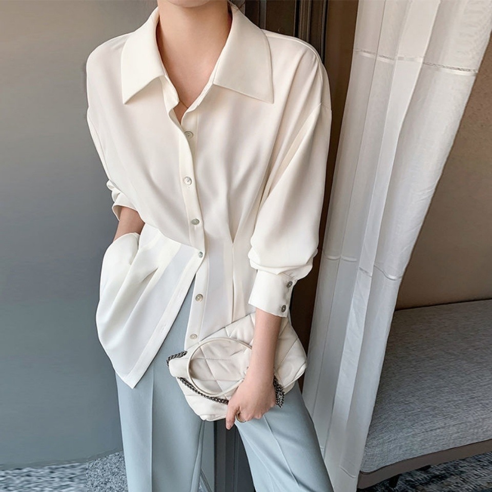 쉬폰 셔츠 여성용 디자인 센스 봄 2021 새로운 허리 슬리밍 틈새 조명 성숙한 긴팔 올매치 탑