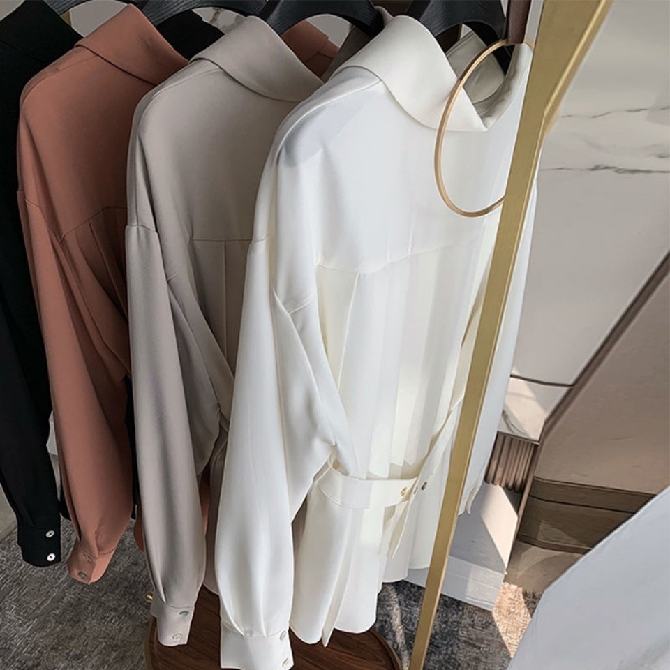 쉬폰 셔츠 여성용 디자인 센스 봄 2021 새로운 허리 슬리밍 틈새 조명 성숙한 긴팔 올매치 탑스토어 가기