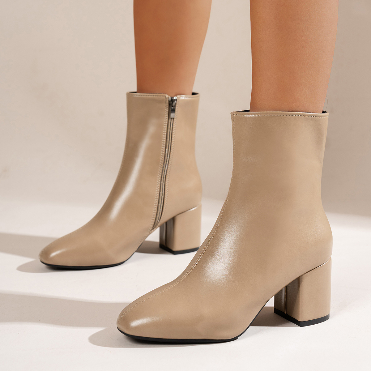 하이힐 짧은 부츠 여성 중반 송아지 2025 가을 새로운 측면 지퍼 대형 부츠 패션 두꺼운 뒤꿈치 작은 사각형 머리