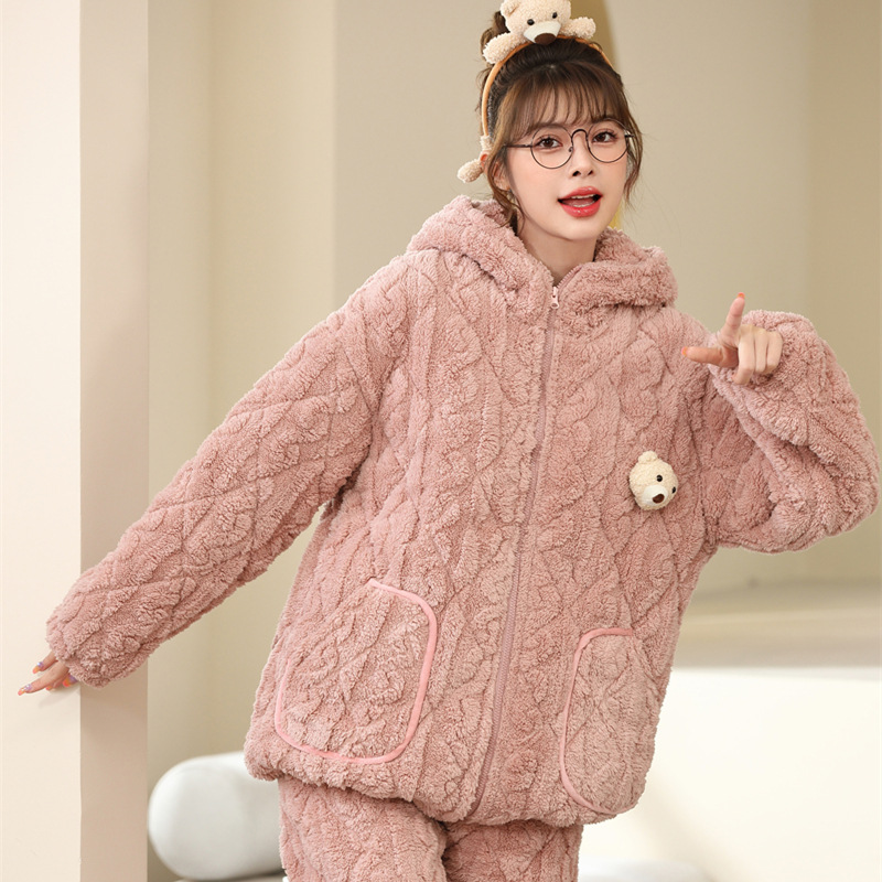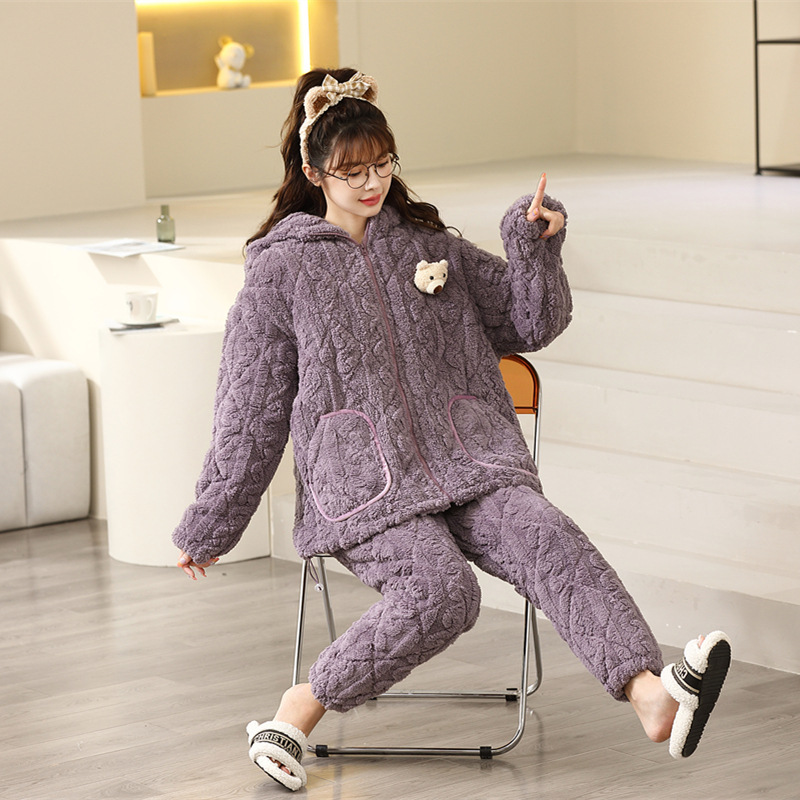 가을과 겨울 남자와 여자의 누비 이불 잠옷 3 층 두꺼운 따뜻한 지퍼 가정 옷 간단한 캐주얼 커플 잠옷 세트스토어 가기