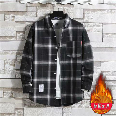 기모 두꺼운 따뜻한 셔츠 남자의 격자 무늬 캐주얼 셔츠 솔질 젊은 Bangchuangwei 한국 슬림 핏 셔츠스토어 가기