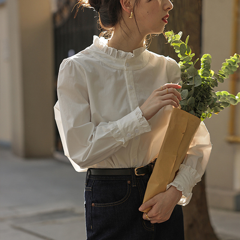 화이트 셔츠 여성용 2022 초가을 새로운 디자인 센스 틈새 하이 엔드 센스 이어 에지 모든 매치 탑 칼라 셔츠