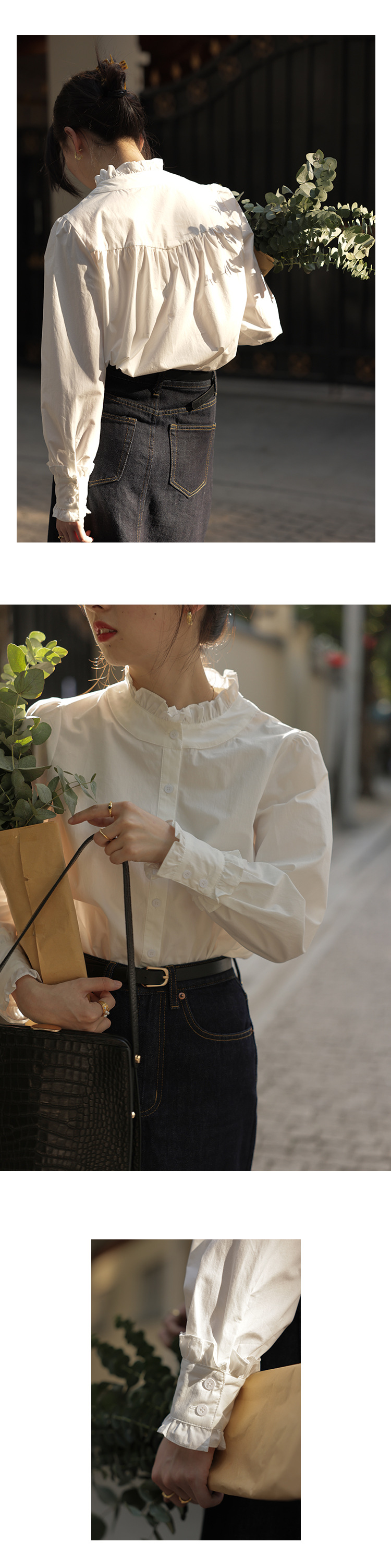 화이트 셔츠 여성용 2022 초가을 새로운 디자인 센스 틈새 하이 엔드 센스 이어 에지 모든 매치 탑 칼라 셔츠스토어 가기