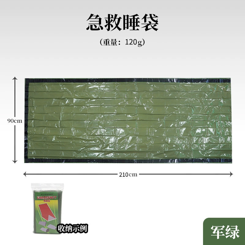 8.急救睡袋是在特殊情况下使用的,比如地震后露宿街头,或者户外遇险,在没有其他任何御寒衣物和睡袋的情况下,过上急救睡袋可以有效的保持体温。