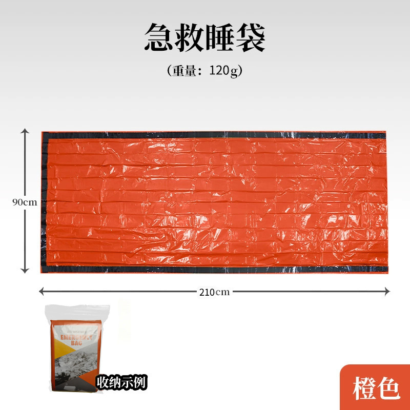 3.专业急救颜色橙色,更容易让营救的人员发现,实为野外求生工具。在睡袋里加一层急救毯更能提高保温能力,对保证睡眠温度大有好处。