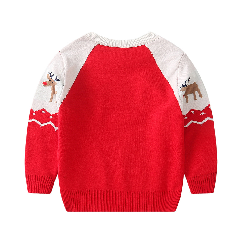 아마존 대외 무역 아동복 크리스마스 아동 스웨터 세 새끼 사슴 더블 자카드 만화 풀오버 긴 소매 재고스토어 가기