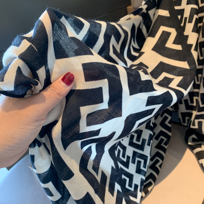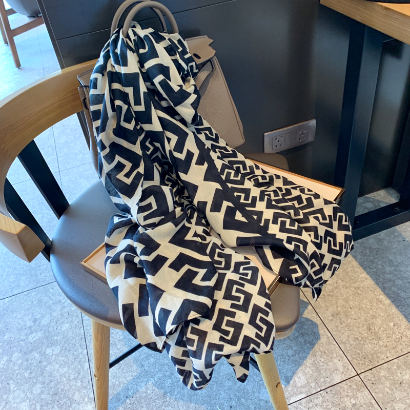 클래식 조커 흑백 기하학적 우아한 스카프 여성용 가을과 겨울 한국식 조커 여행 스카프 숄 이중 사용 스카프스토어 가기