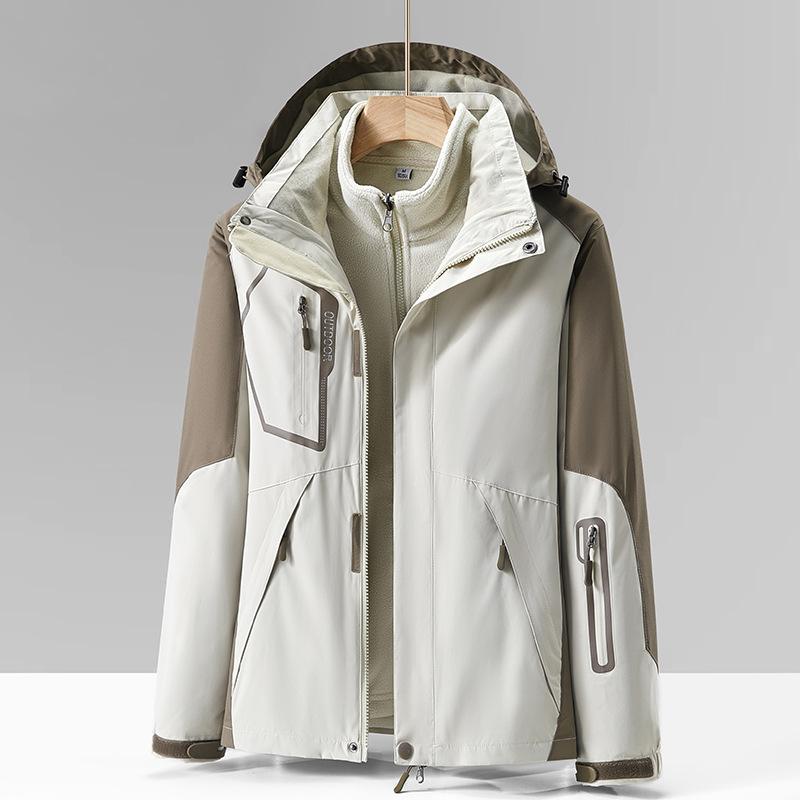 남녀공용 아웃도어 등산복, 삼합일 플리스 안감 탈부착 가능 방수 방풍 재킷, 크로스보더