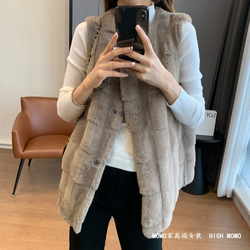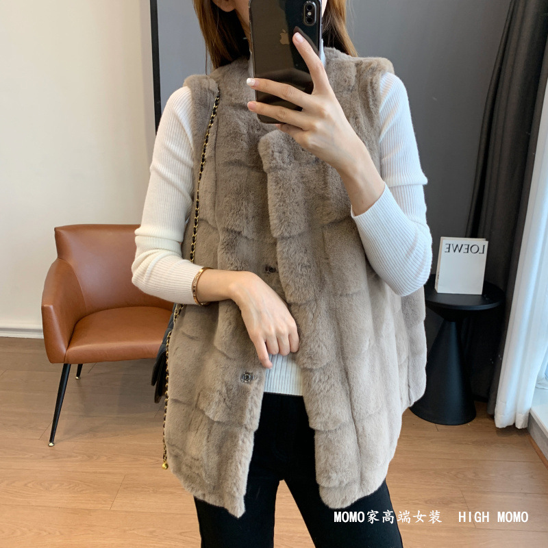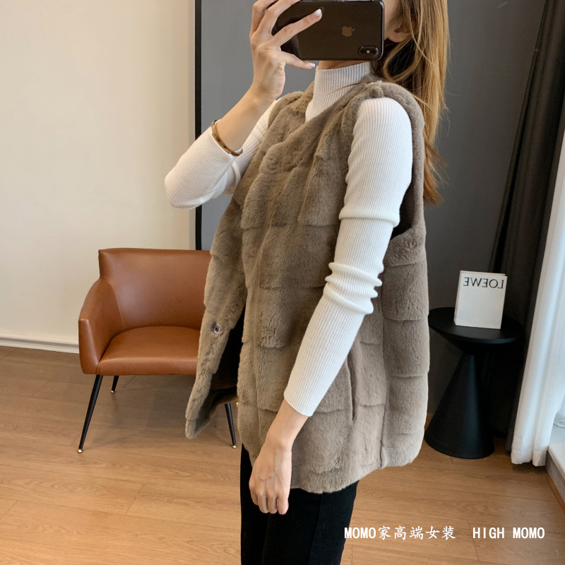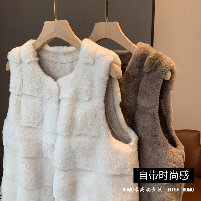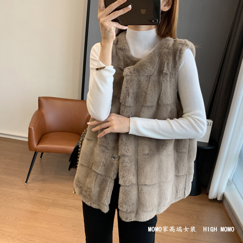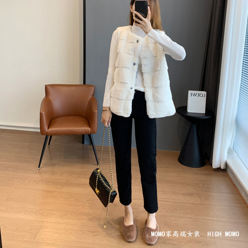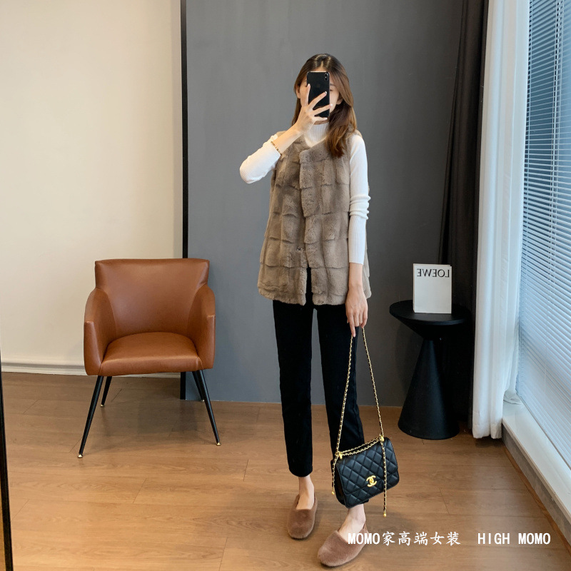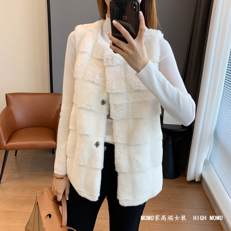 라이트 S 여성 의류 유럽산 모조 밍크 혼합 사교계 슬림 룩 모피 모피 조끼 여성 조끼 재킷스토어 가기