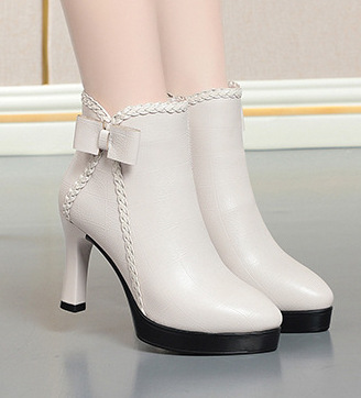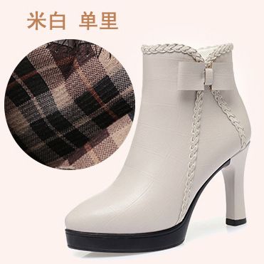 국경 간 짧은 굽 부츠 여자 가을 및 겨울 새로운 올 매치 뾰족한 하이힐 부츠 여성용 얇은 굽 코튼 슈즈 여성용 기모 여성용 여성용 벌거 벗은 부츠스토어 가기