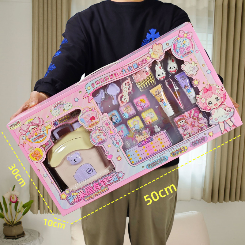 소녀 큰 선물 상자 놀이 집 만화 DIY 사탕 집 구오 카드 어린이 돼지 저금통 장난감 교육 및 훈련 갱신 선물