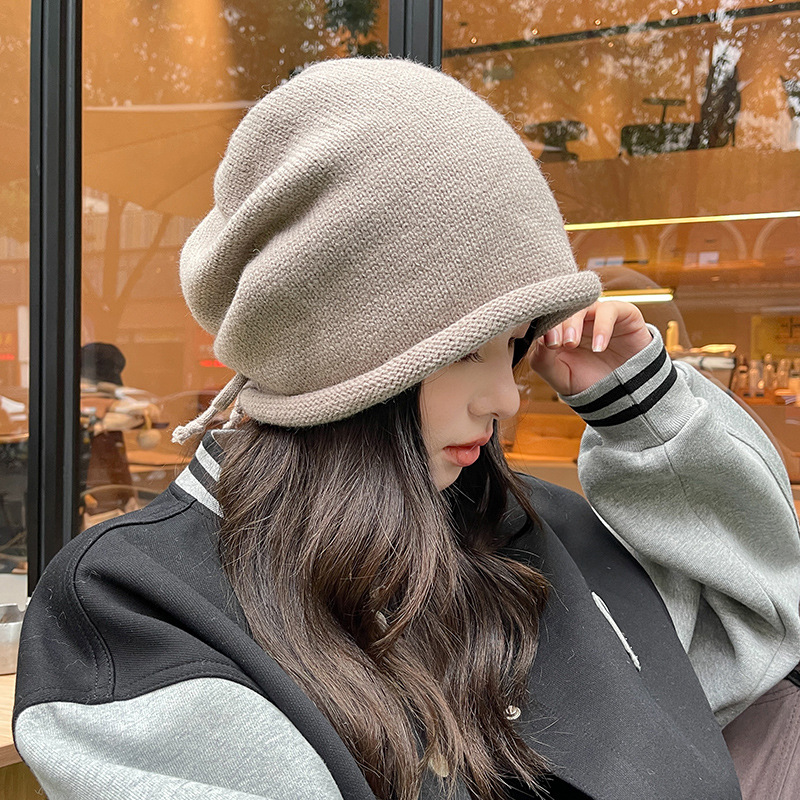 니트 울 모자 여성용 큰 머리 풀오버 웨어 트렌디 한 모든 경기 모자 밤 모자 여성용 콜드 햇 문 모자 인터넷 연예인 힙 모자스토어 가기