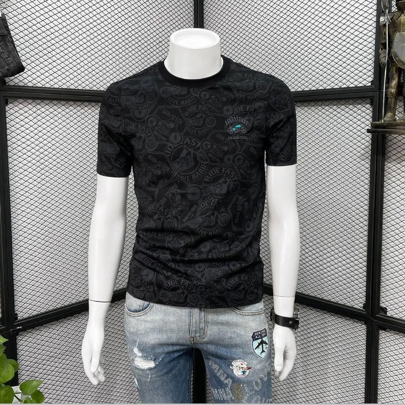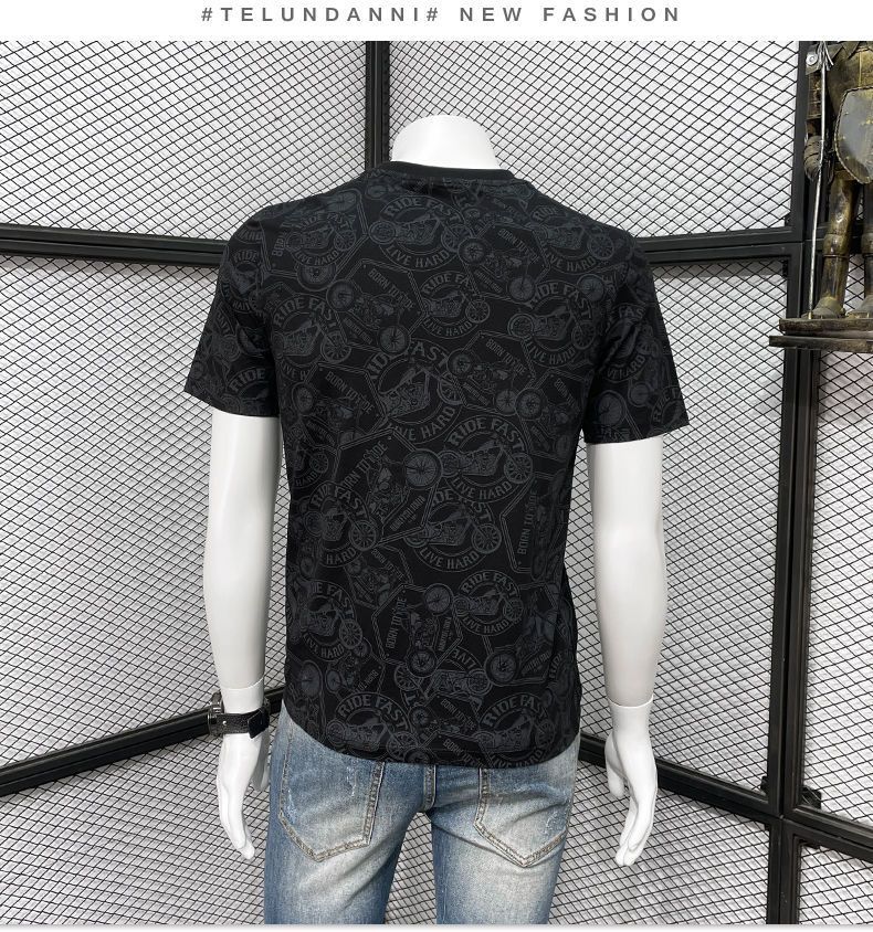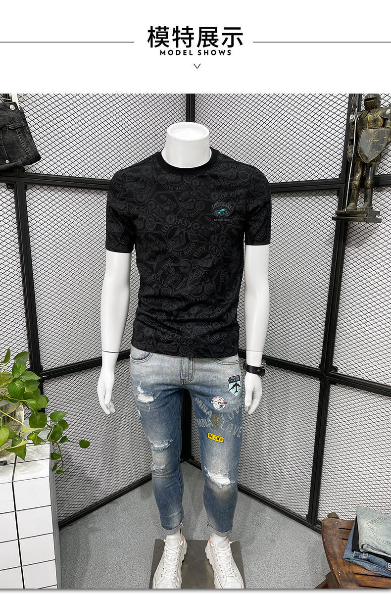 반팔 티셔츠 남성용 여름 새로운 고급 패션 트렌디 브랜드 자수 탑 캐주얼 트렌디 전신 프린트 라운드 넥 인테리어