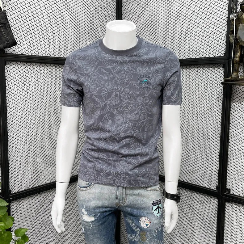 반팔 티셔츠 남성용 여름 새로운 고급 패션 트렌디 브랜드 자수 탑 캐주얼 트렌디 전신 프린트 라운드 넥 인테리어스토어 가기