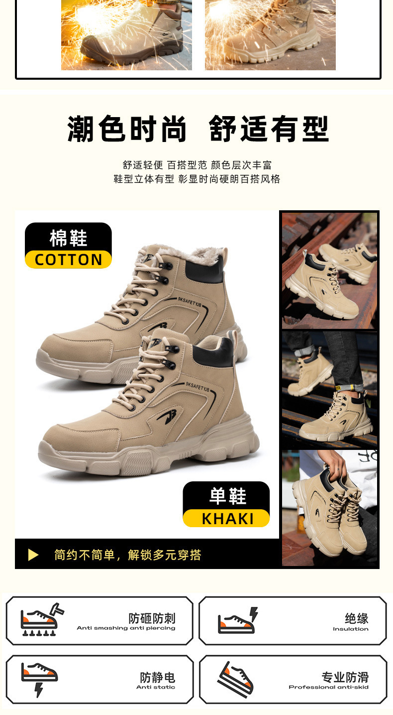 Meikeduo 하이 탑 4 시즌 크로스 국경 노동 보호 신발 남성 스틸 발가락 내마모성 안전 신발 빌딩 펑크 방지 작업 신발스토어 가기