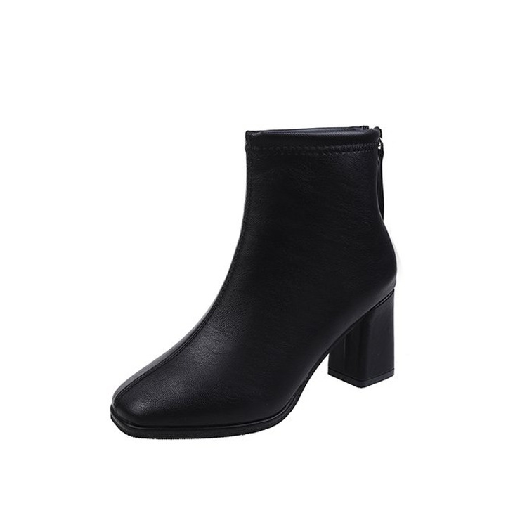 부츠 2022 가을과 겨울 새로운 한국 스타일 리어 지퍼 스퀘어 토 숏부츠 여성용 두꺼운 굽 하이힐 숏부츠 여성용 패션 부츠 여성용 신발스토어 가기