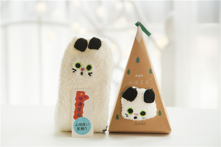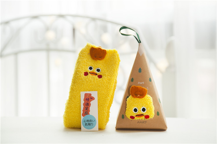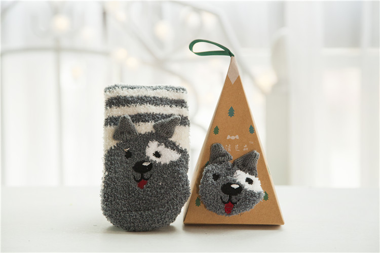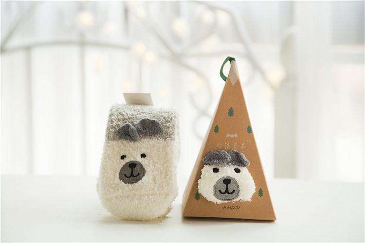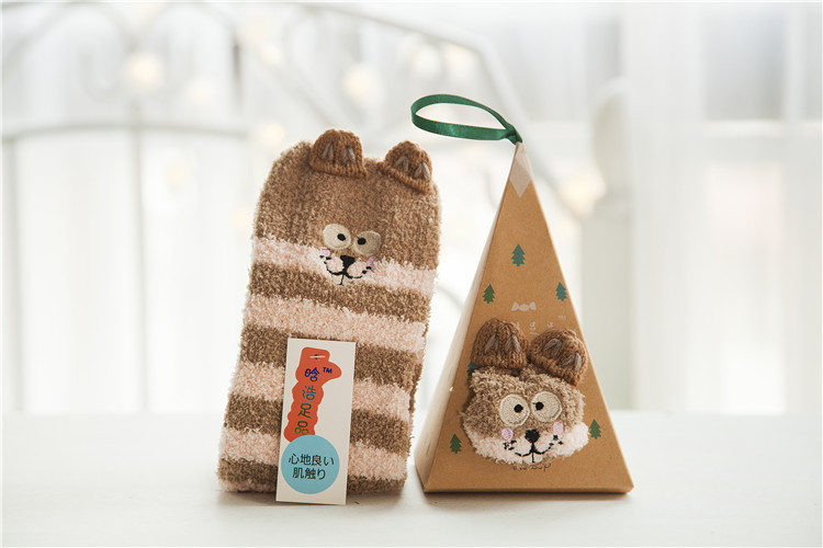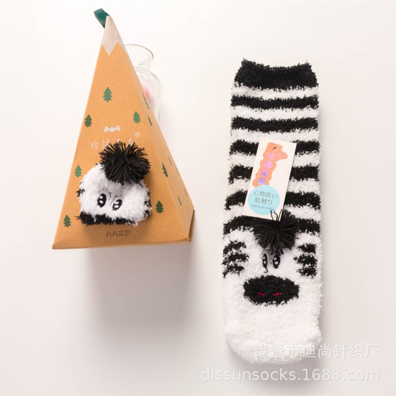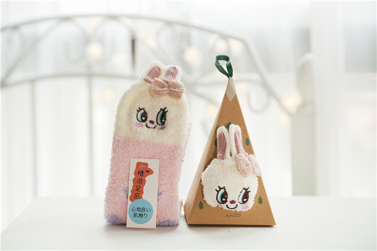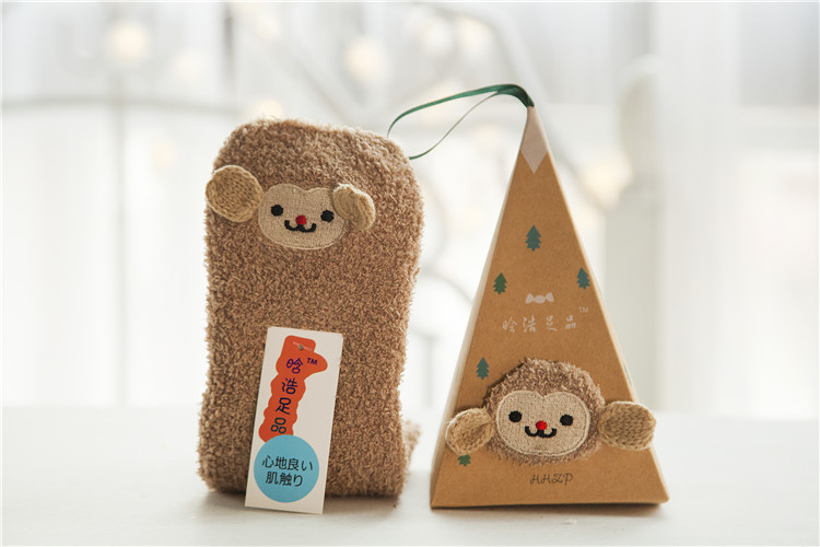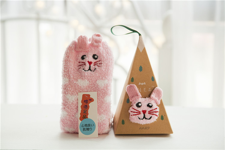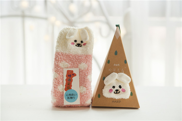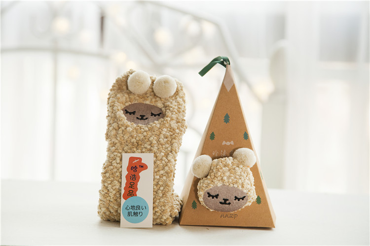 冬季日系新品卡通珊瑚绒袜子女 加厚毛巾地板毛圈袜 半边绒睡眠袜