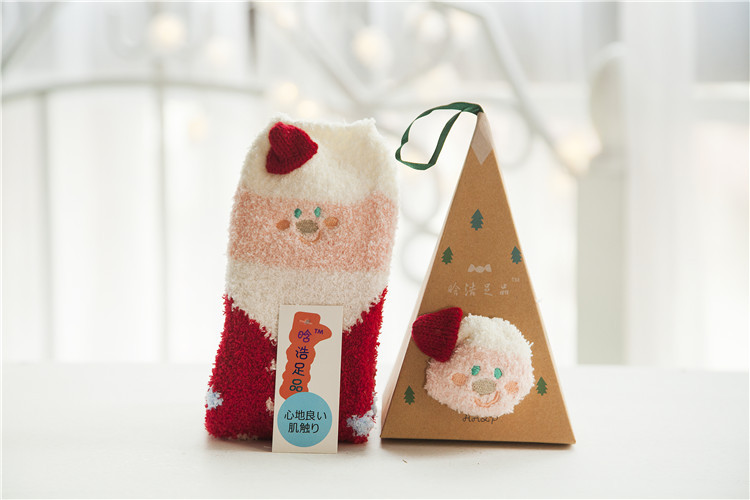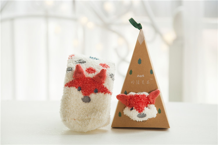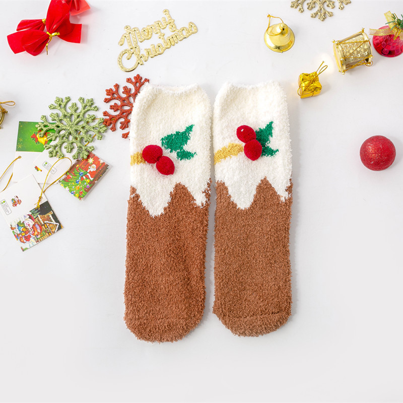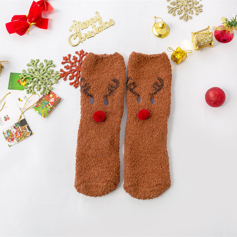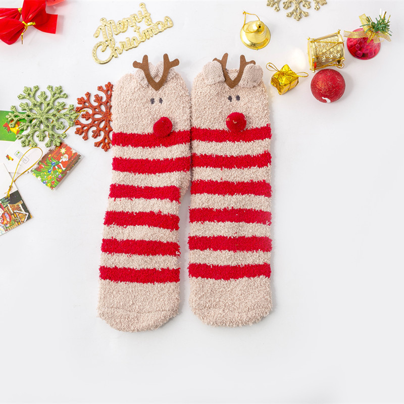 겨울 새로운 만화 크리스마스 산호 양털 양말 여자의 두꺼운 따뜻한 수건 바닥 테리 반 양털 수면 양말