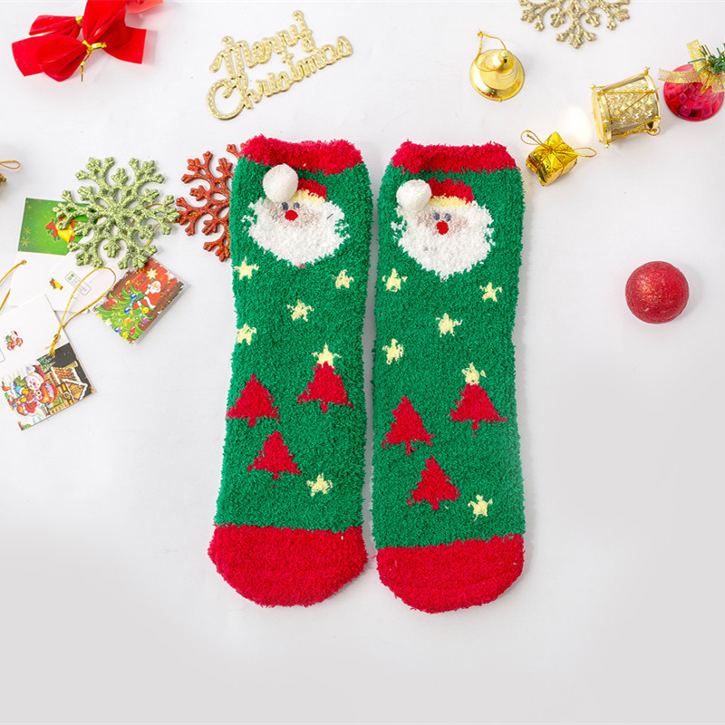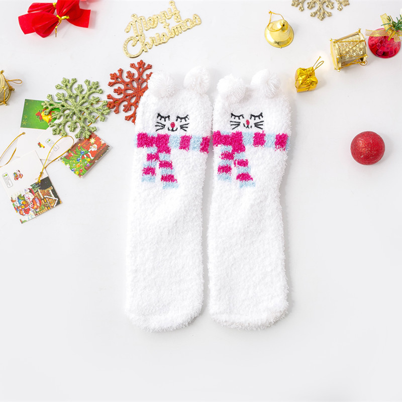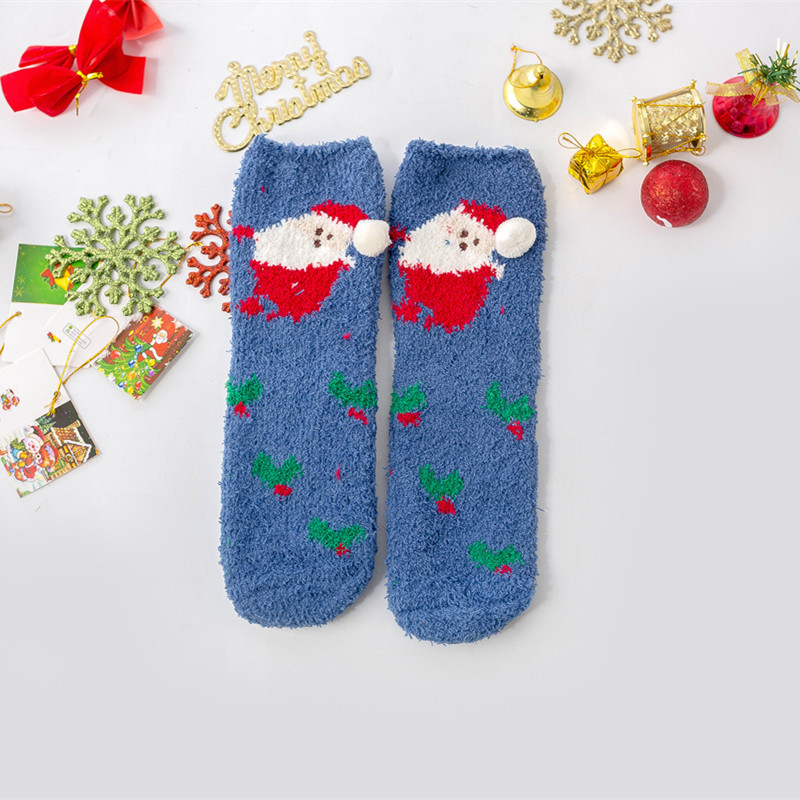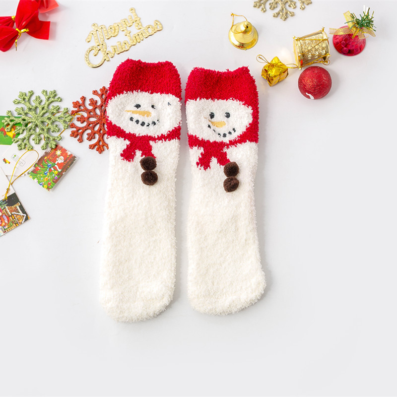 겨울 새로운 만화 크리스마스 산호 양털 양말 여자의 두꺼운 따뜻한 수건 바닥 테리 반 양털 수면 양말스토어 가기