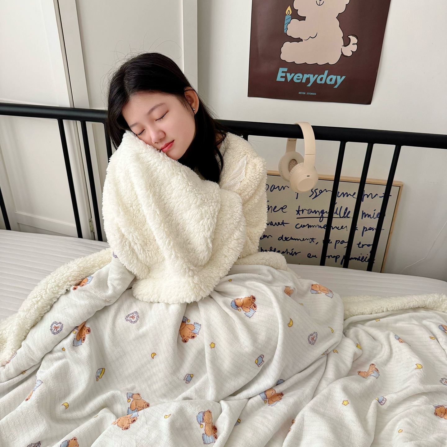 In lambswool 담요 더블 레이어 두꺼운 낮잠 담요 소파 담요 플랜지 우유 벨벳 에어컨 담요 도매스토어 가기
