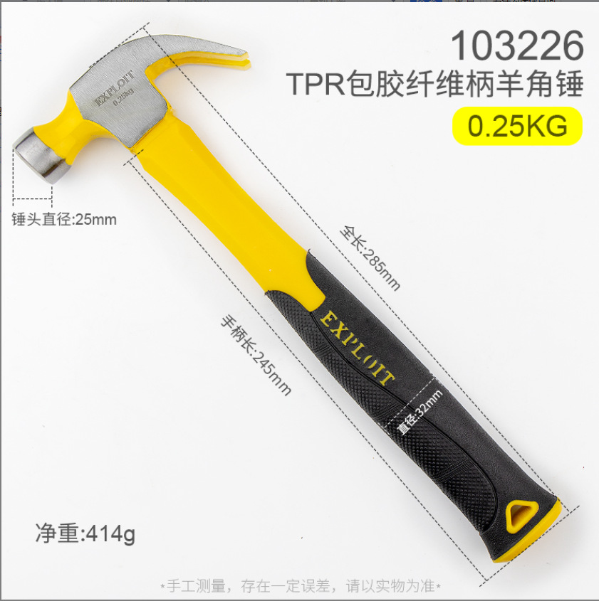 • 고무 코팅 섬유 손잡이 클로 해머(250G)103226