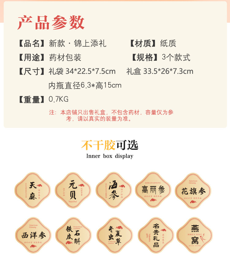도매의 귀중한 선물 상자 해삼의 보물 파낙스 노트인삼 덴드로비움 분말 유안베이 해산물 건조 상품 포장 상자 3 병 6 병 4 병스토어 가기