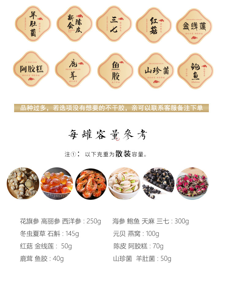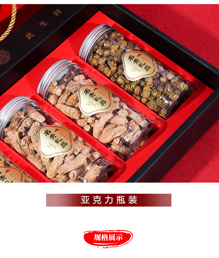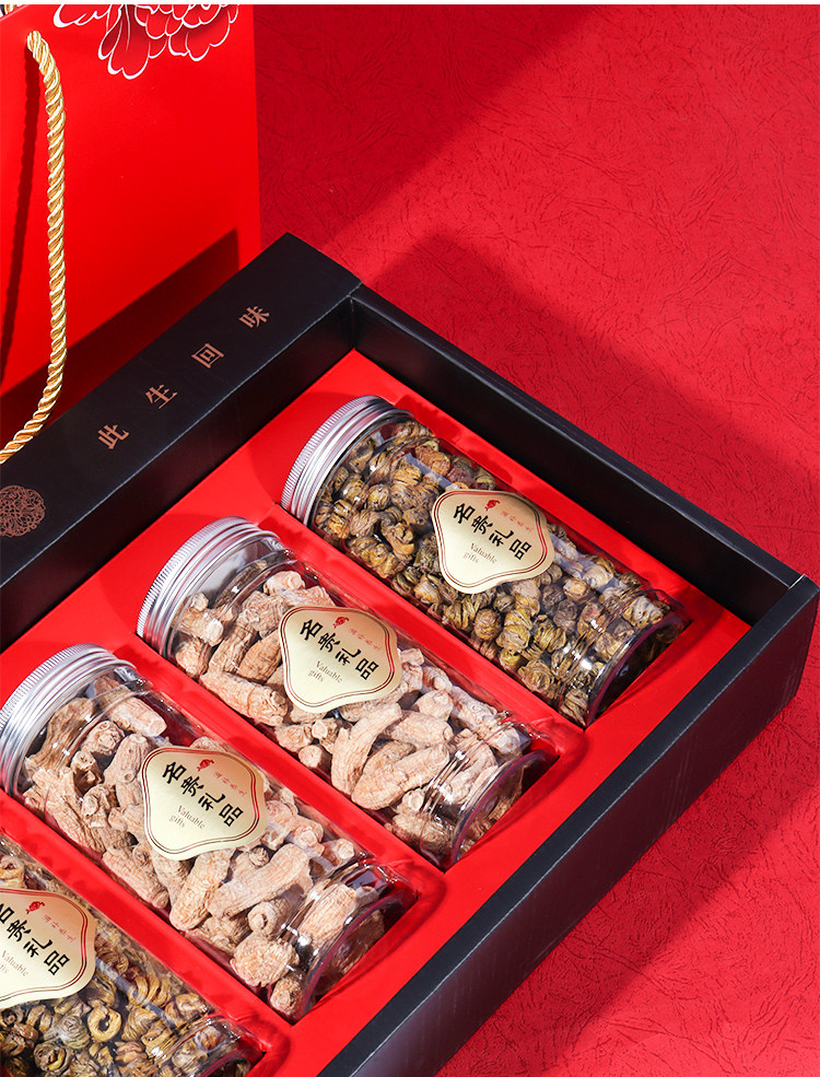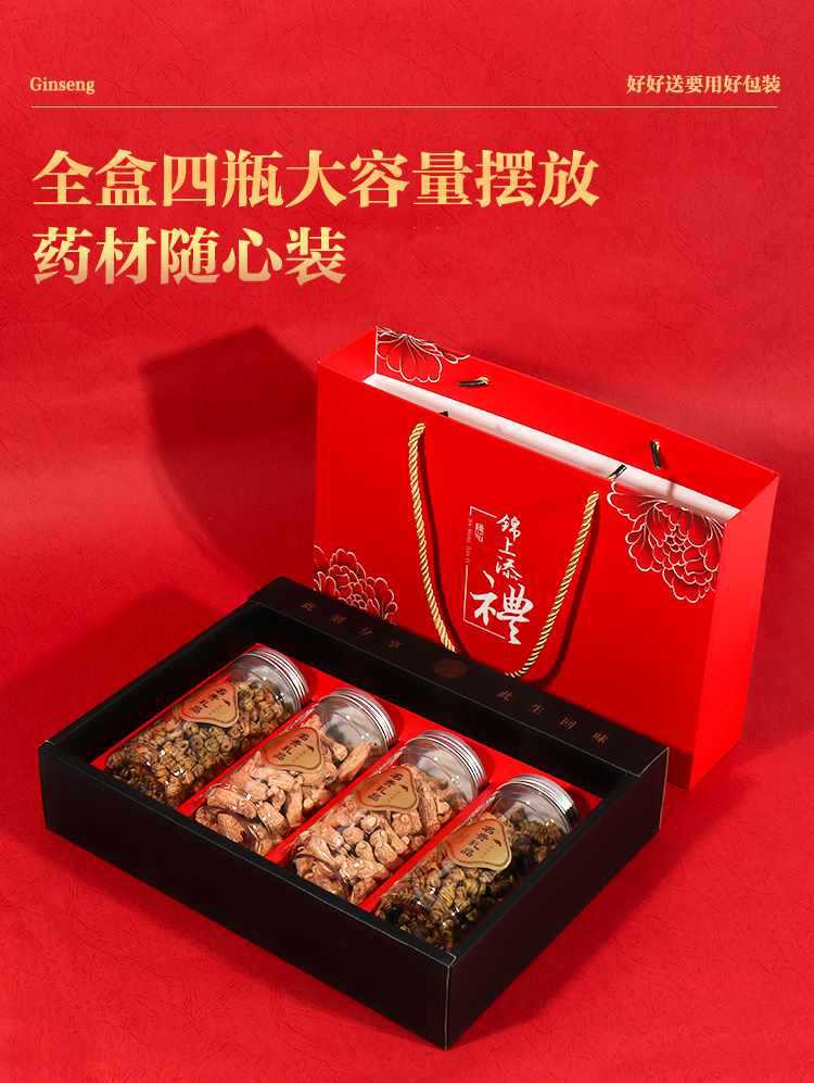 도매의 귀중한 선물 상자 해삼의 보물 파낙스 노트인삼 덴드로비움 분말 유안베이 해산물 건조 상품 포장 상자 3 병 6 병 4 병