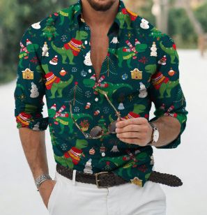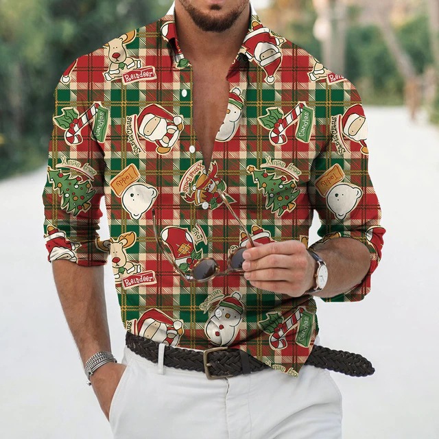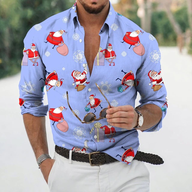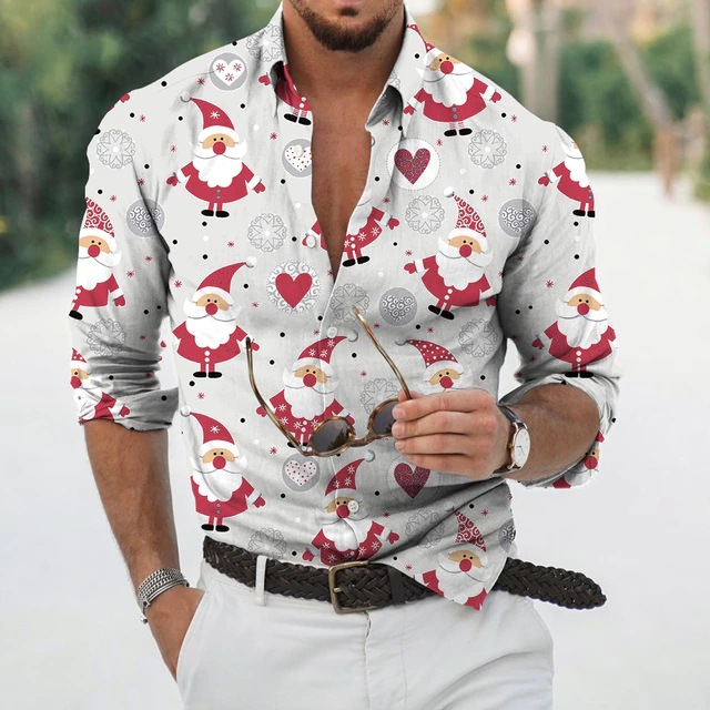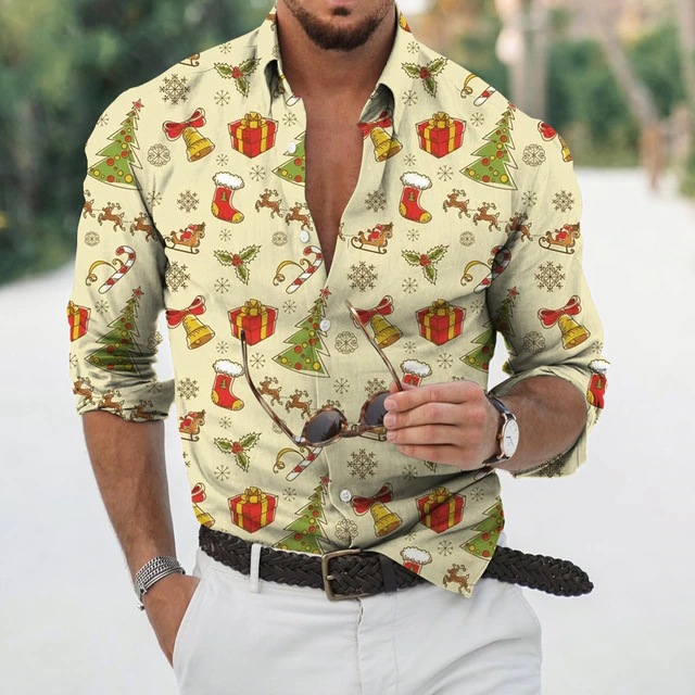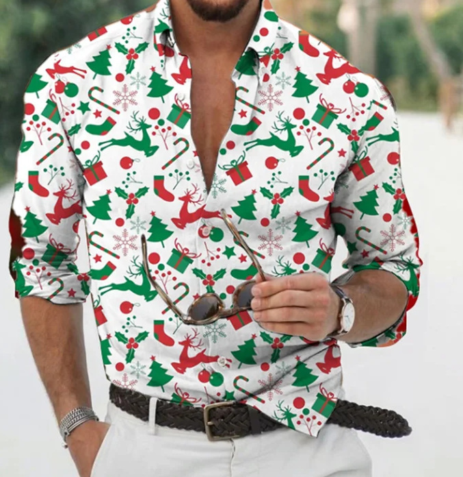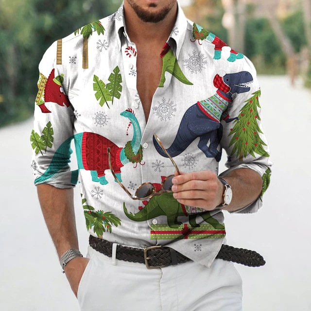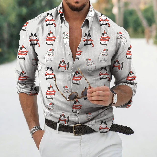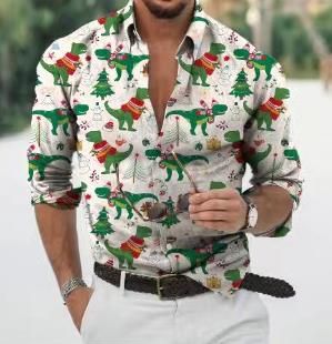 3D 프린팅 패션 봄과 가을 독립 스테이션 핫세일 하와이 크리스마스 시리즈 남성 스트리트 캐주얼 긴팔 셔츠스토어 가기