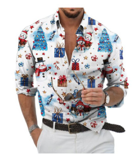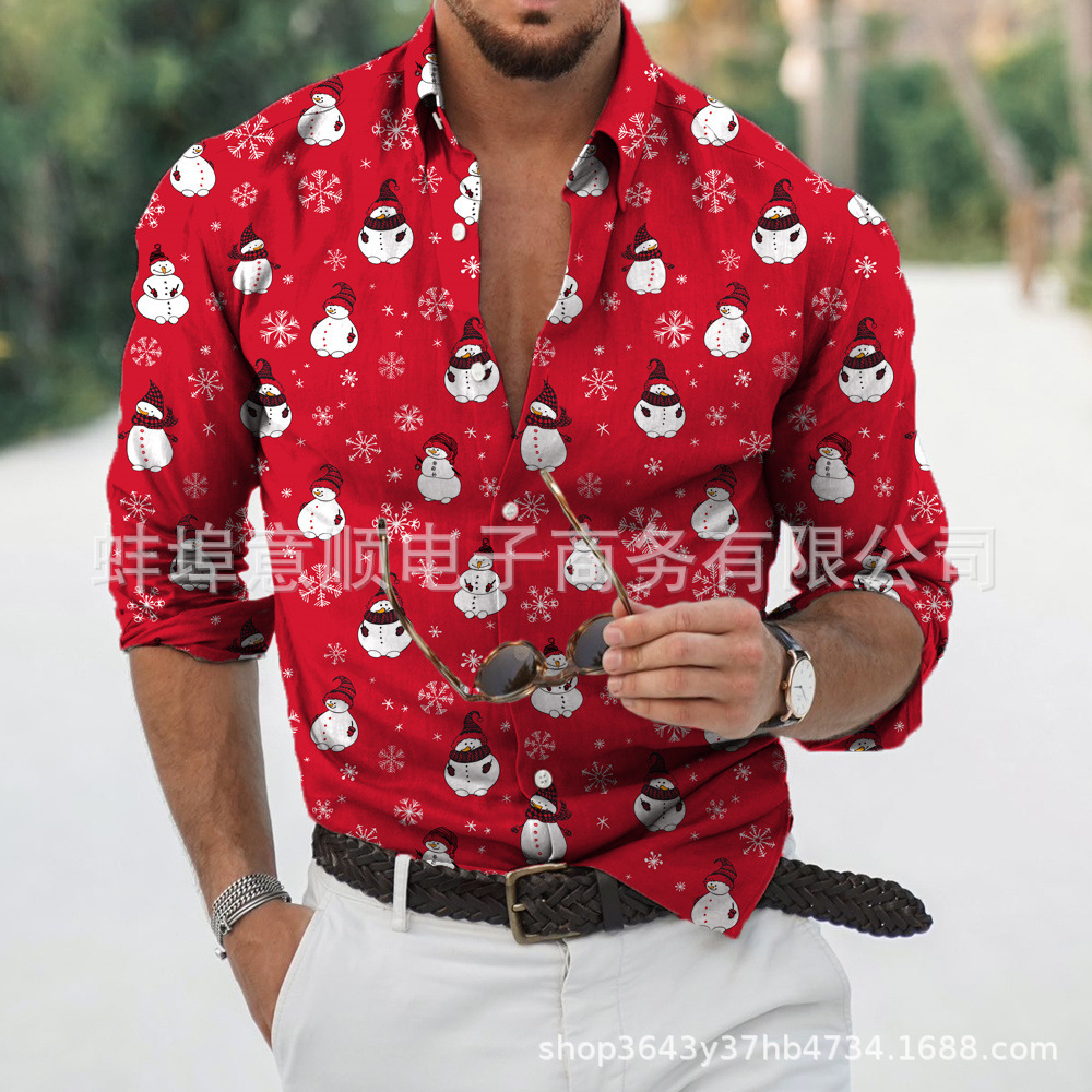 3D 프린팅 패션 봄과 가을 독립 스테이션 핫세일 하와이 크리스마스 시리즈 남성 스트리트 캐주얼 긴팔 셔츠