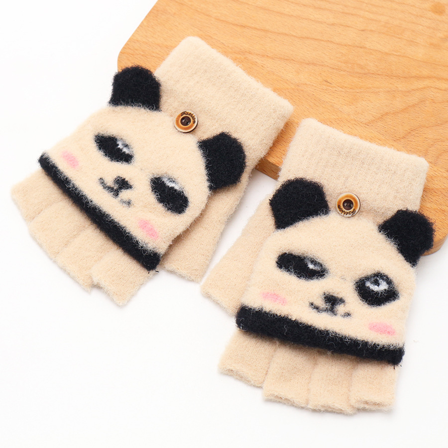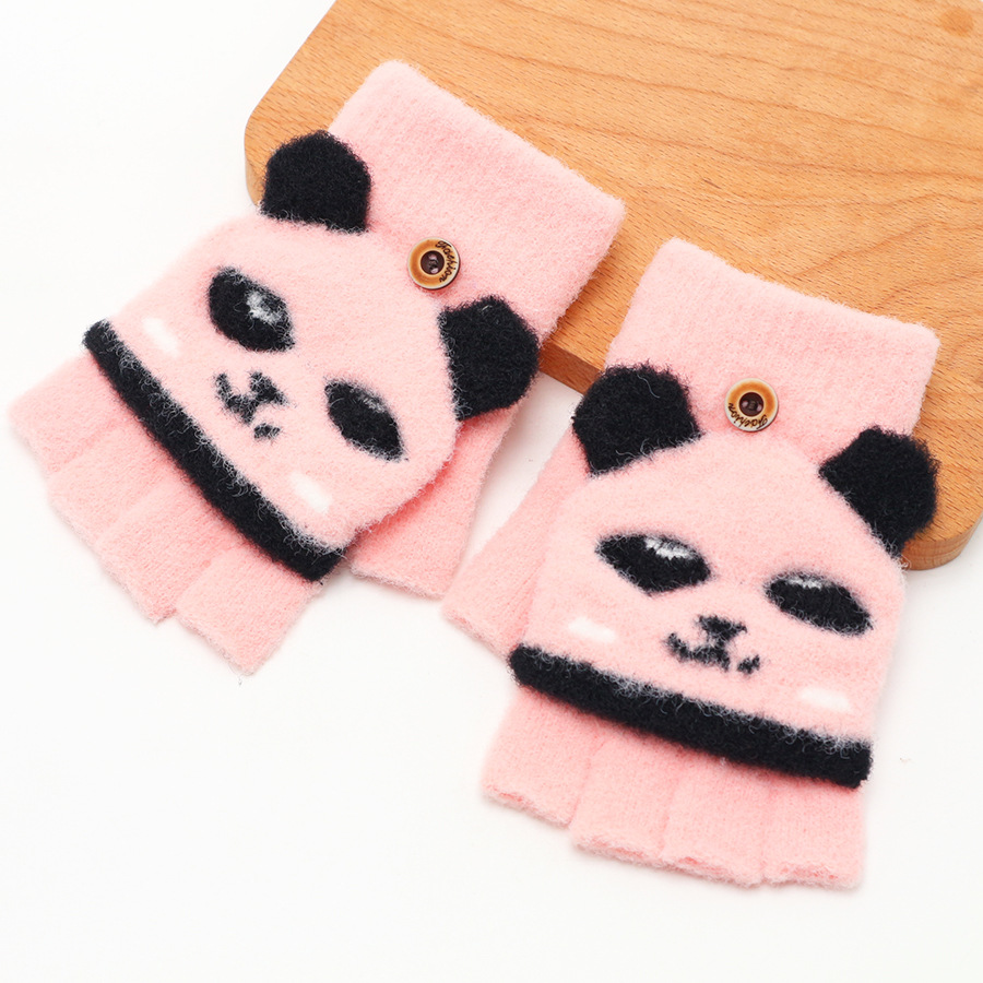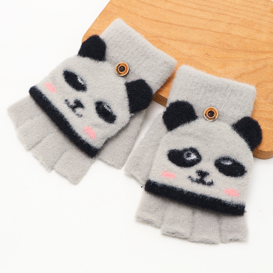 어린이 플립 장갑 플러시 두꺼운 따뜻한 가을과 겨울 중간 어린이 반 손가락 쓰기 어린이 냉동 만화 팬더