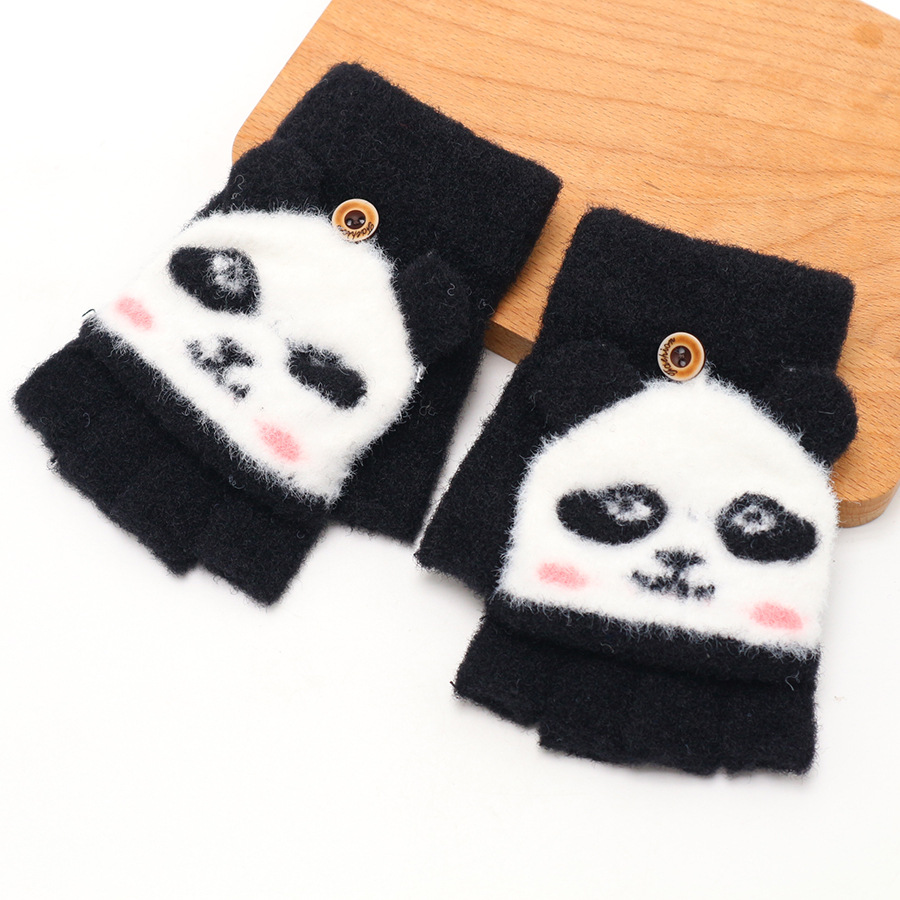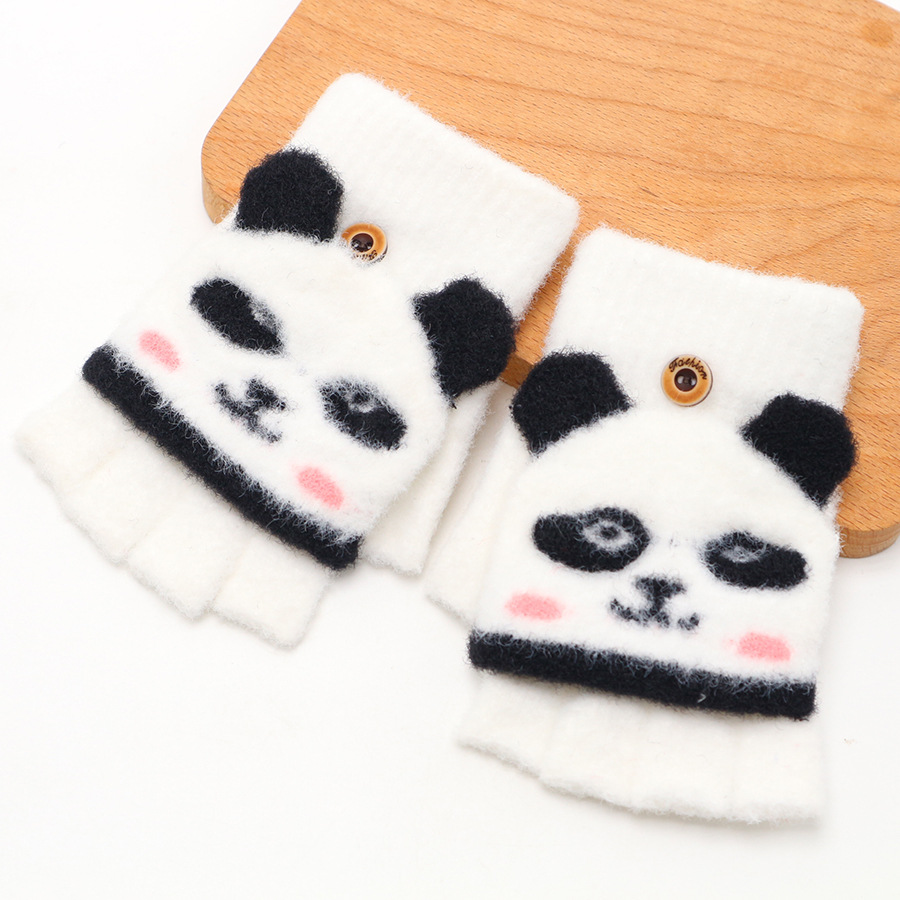 어린이 플립 장갑 플러시 두꺼운 따뜻한 가을과 겨울 중간 어린이 반 손가락 쓰기 어린이 냉동 만화 팬더스토어 가기