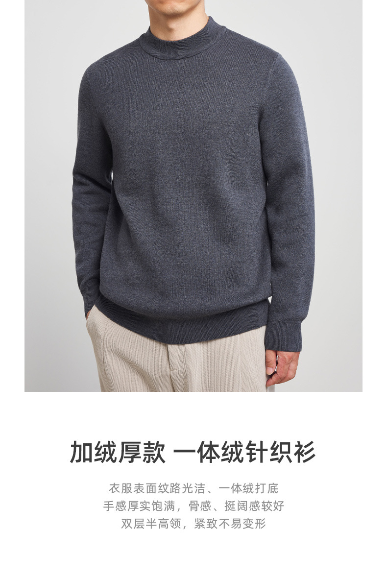 모마이크 하프 터틀넥 플리스 안감 스웨터 남성용 2025 겨울 모델 심플한 단색 남성 니트웨어 20212스토어 가기