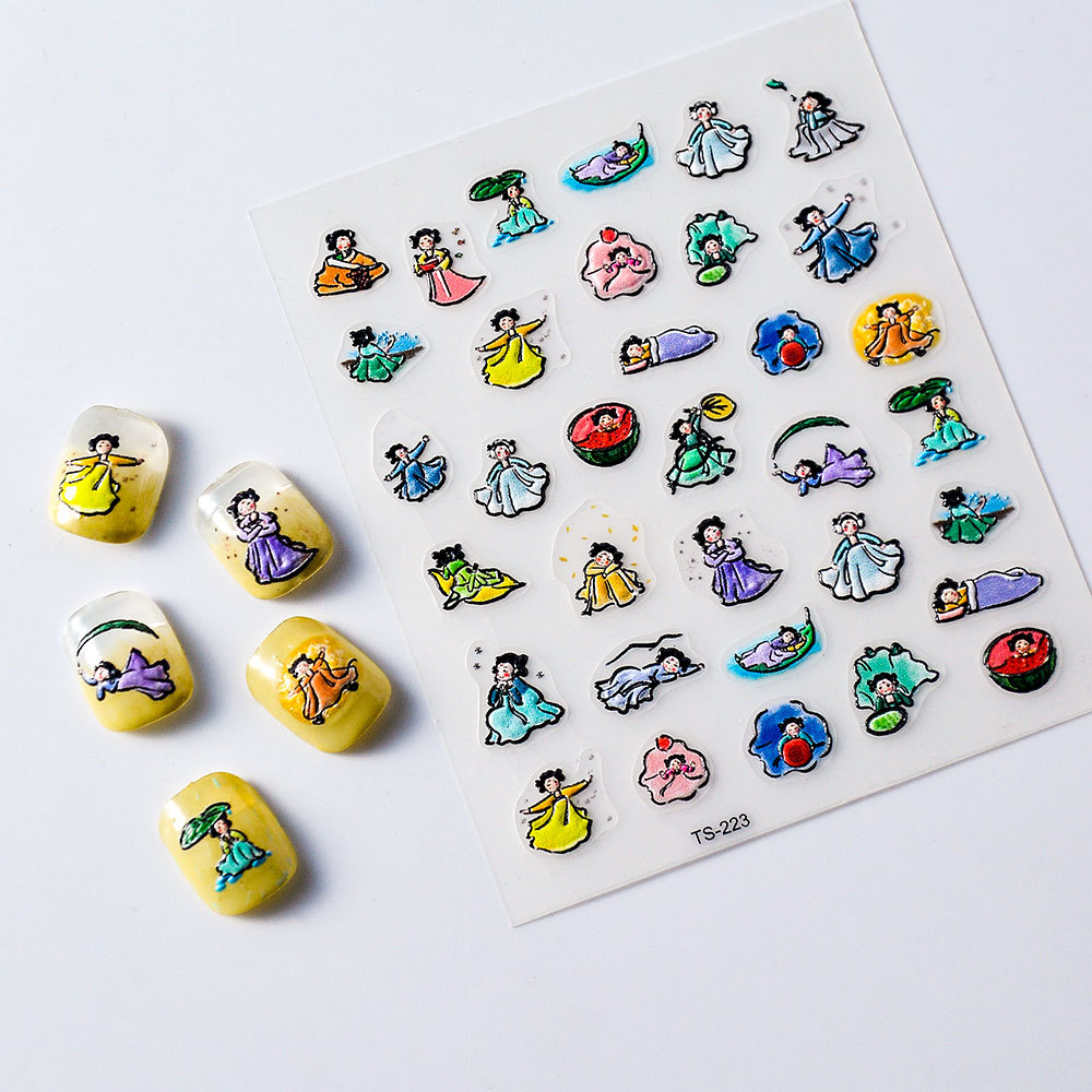 중국 스타일의 새로운 5D 네일 아트 스티커 접착 방수 작은 책 어린이 네일 스티커 양각 작은 요정 네일 스티커 도매스토어 가기
