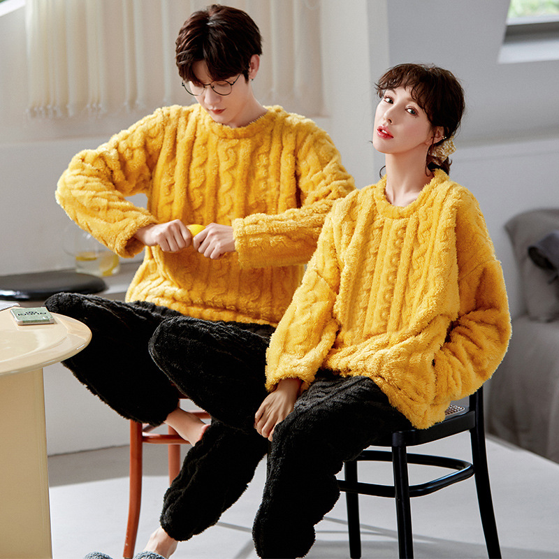 겨울 플란넬 커플 잠옷 여성용 라운드넥 풀오버 코랄벨벳 두꺼운 남성용 홈웨어 외출복 가능