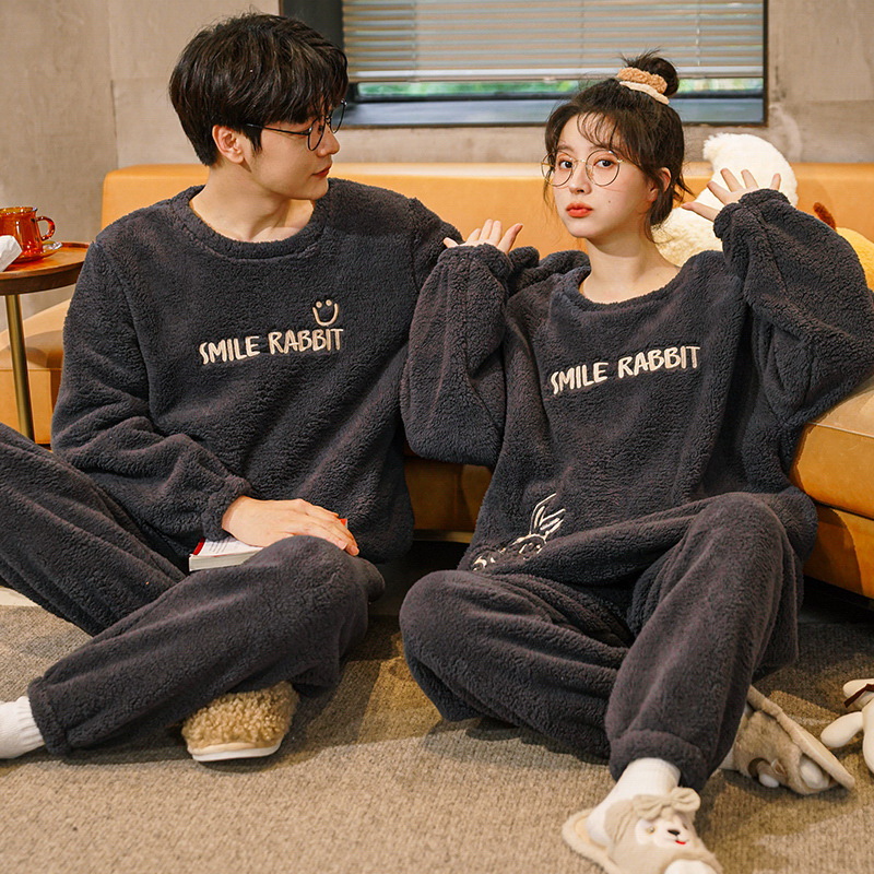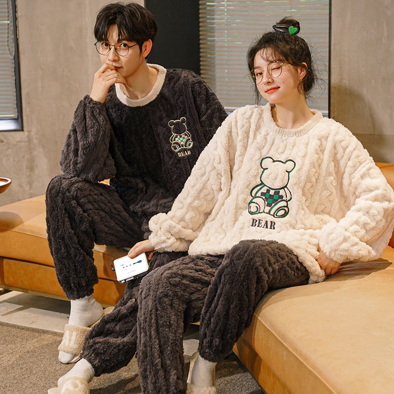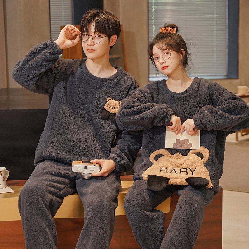겨울 플란넬 커플 잠옷 여성용 라운드넥 풀오버 코랄벨벳 두꺼운 남성용 홈웨어 외출복 가능스토어 가기