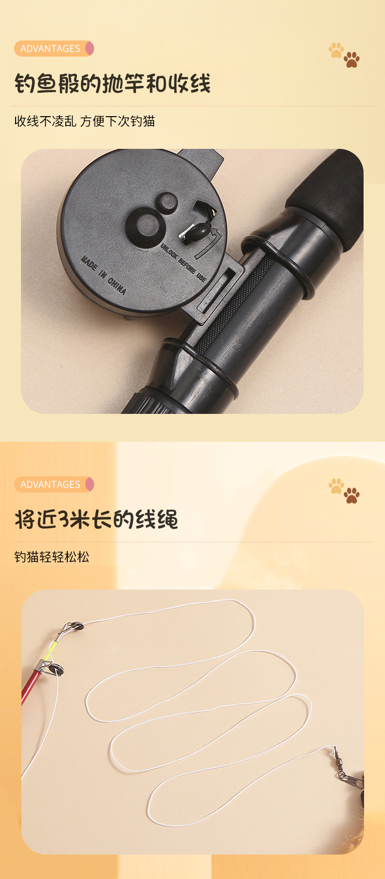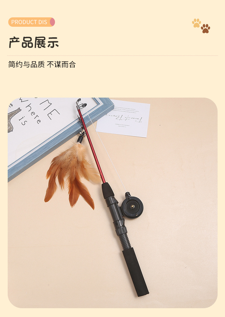 깃털 고양이 재미 있은 막대 긴 막대 도매 애완 동물 장난감 낚시 바퀴 고양이 대화 형 훈련 텔레스코픽 막대 국경 낚싯대스토어 가기