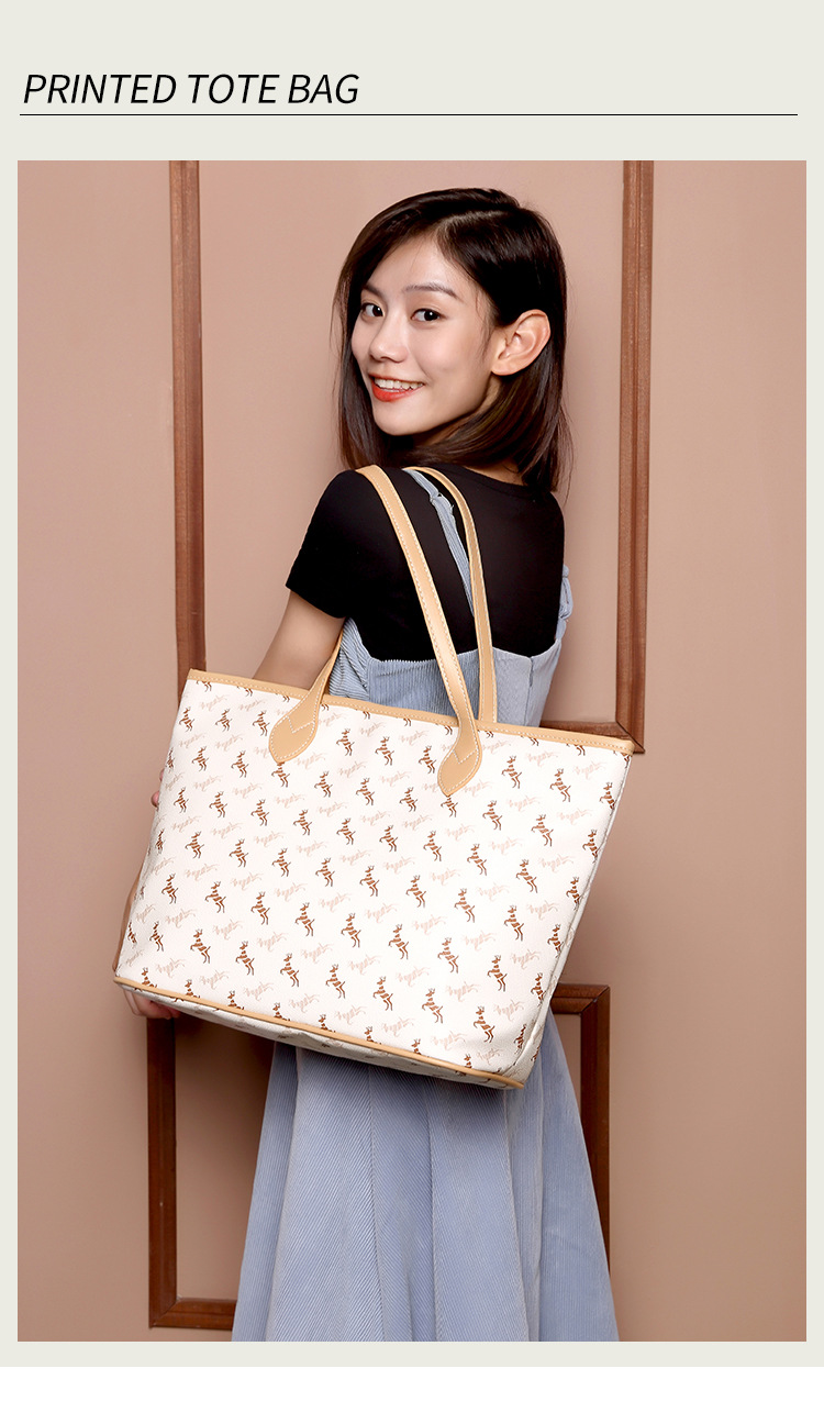 2023 봄 여름 빈티지 대용량 프린트 토트백 여성용 만능 심플 휴대용 통근가방 원 숄더 겨드랑이 가방스토어 가기