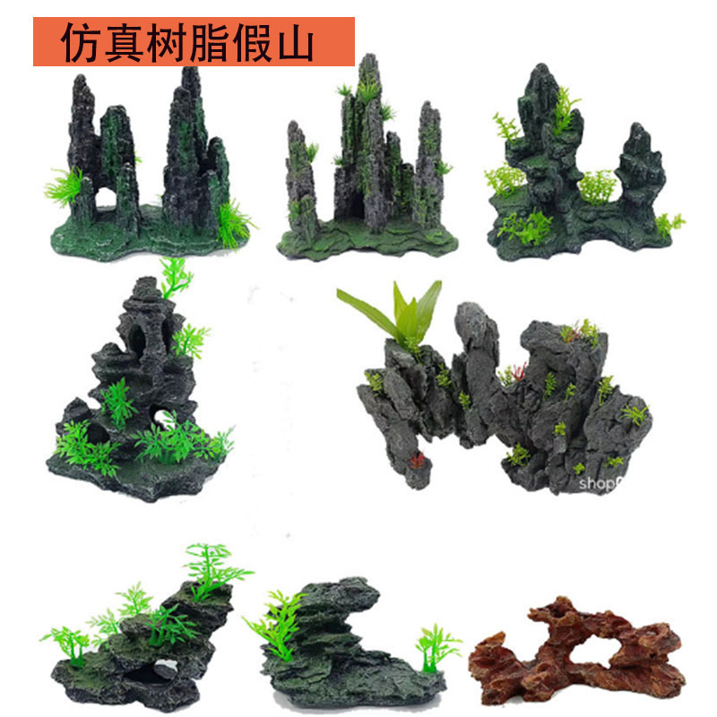 어항 풍경 수족관 시뮬레이션 록키 산 수생 잔디 장식품 창조적 인 물고기 탈출 집 물 잔디 바위 산스토어 가기