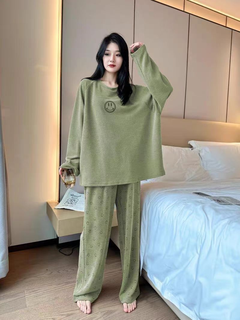 동대문 정통 한국 웃는 얼굴 정장 잠옷 여성 부드러운 피부 친화적 인 스포츠 수면 가정 의류 여성 라이브 방송 새로운 스타일