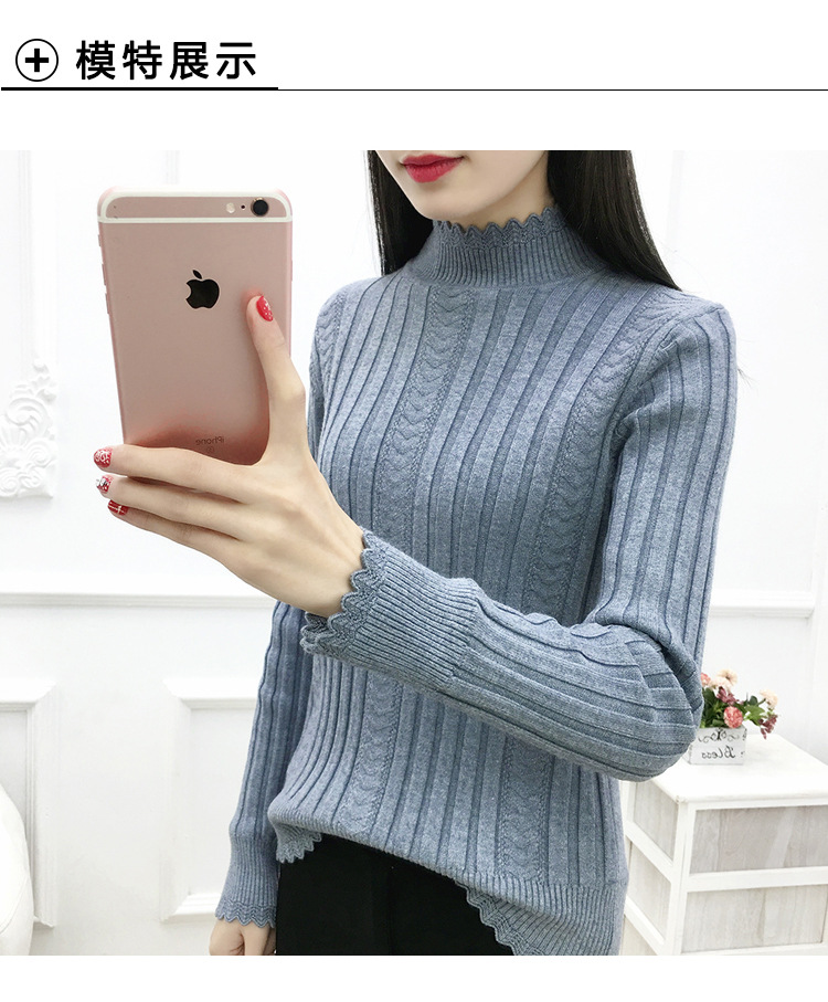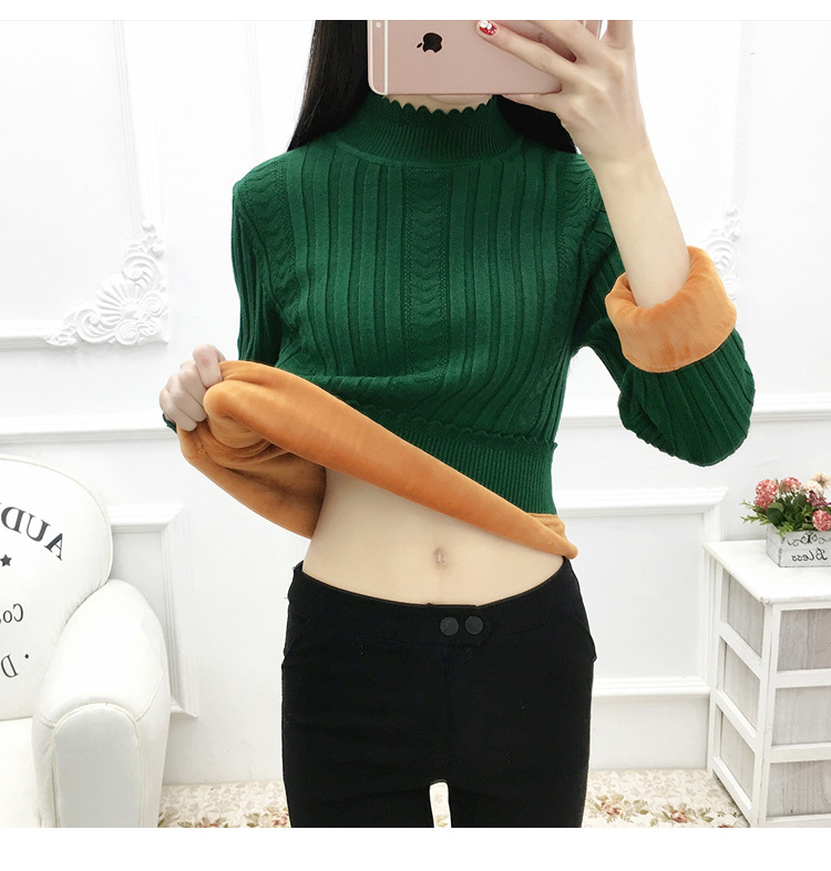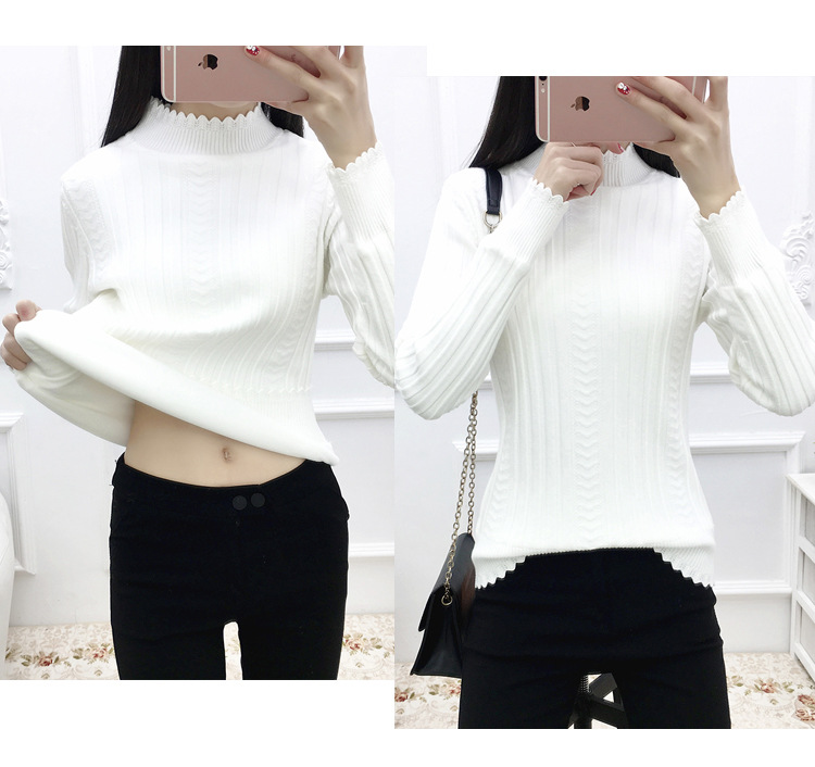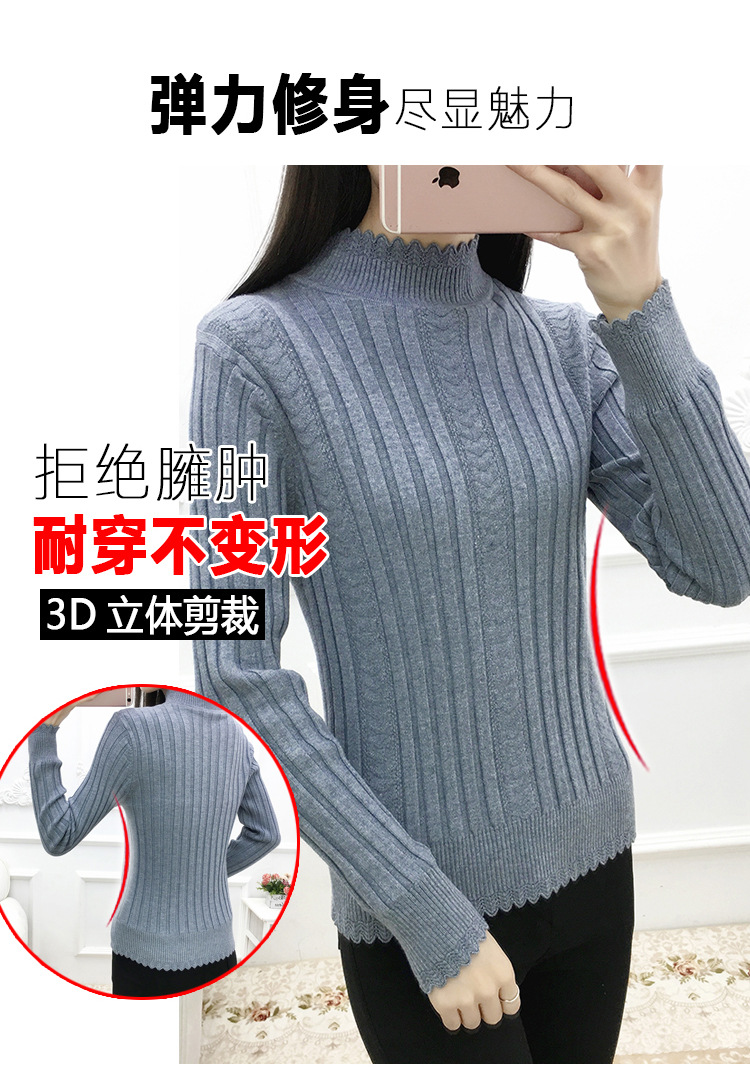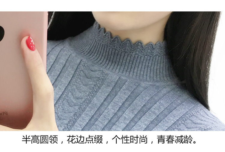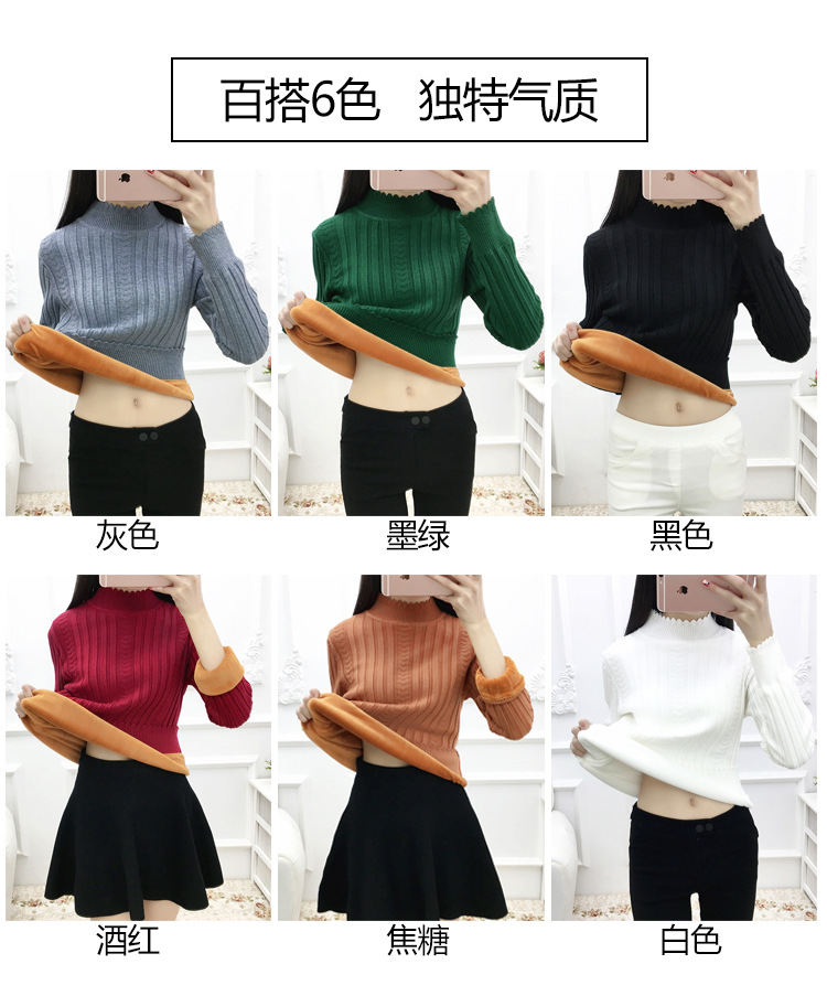 기모 스웨터 여자의 가을과 겨울 풀오버 겉옷 두꺼운 새로운 세미 하이 칼라 니트 따뜻한 의류 내부 기본 셔츠 도매