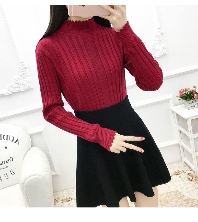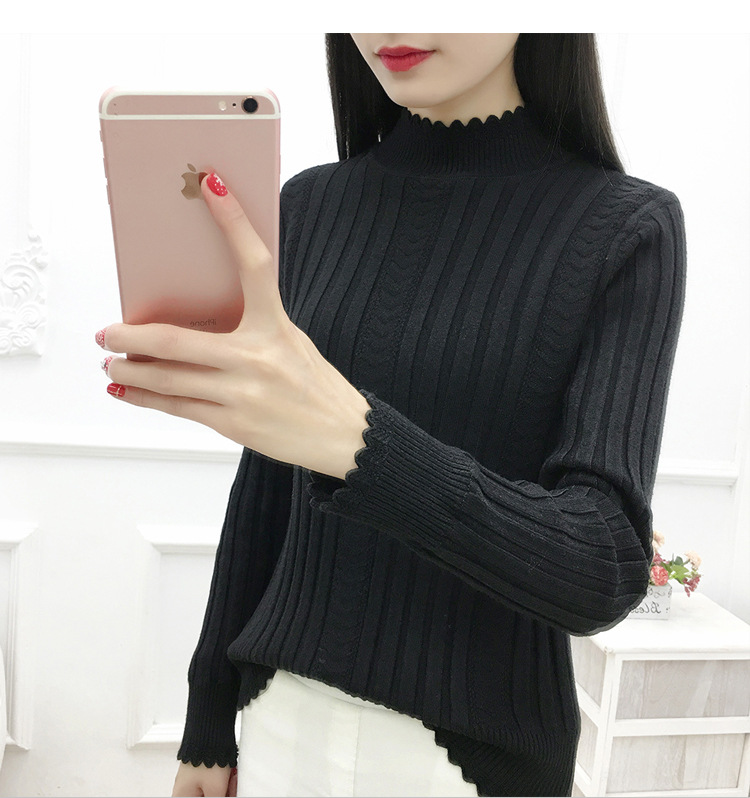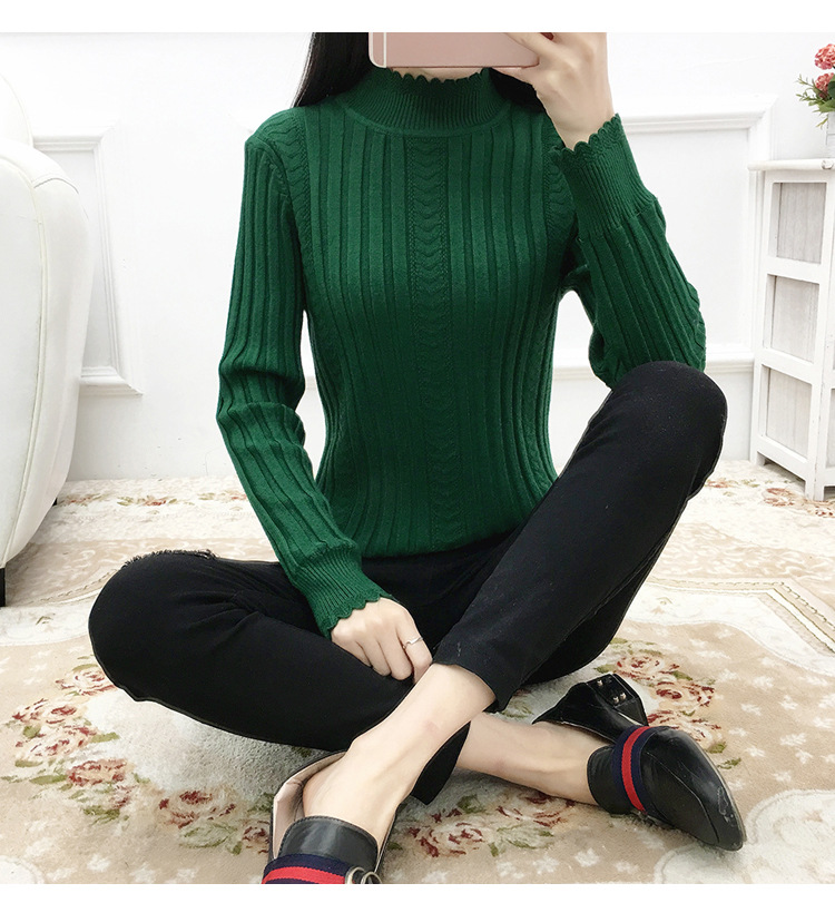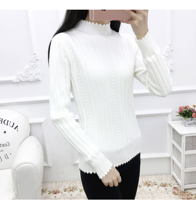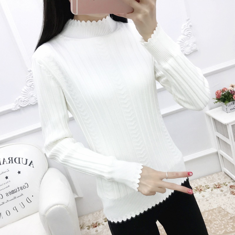 기모 스웨터 여자의 가을과 겨울 풀오버 겉옷 두꺼운 새로운 세미 하이 칼라 니트 따뜻한 의류 내부 기본 셔츠 도매