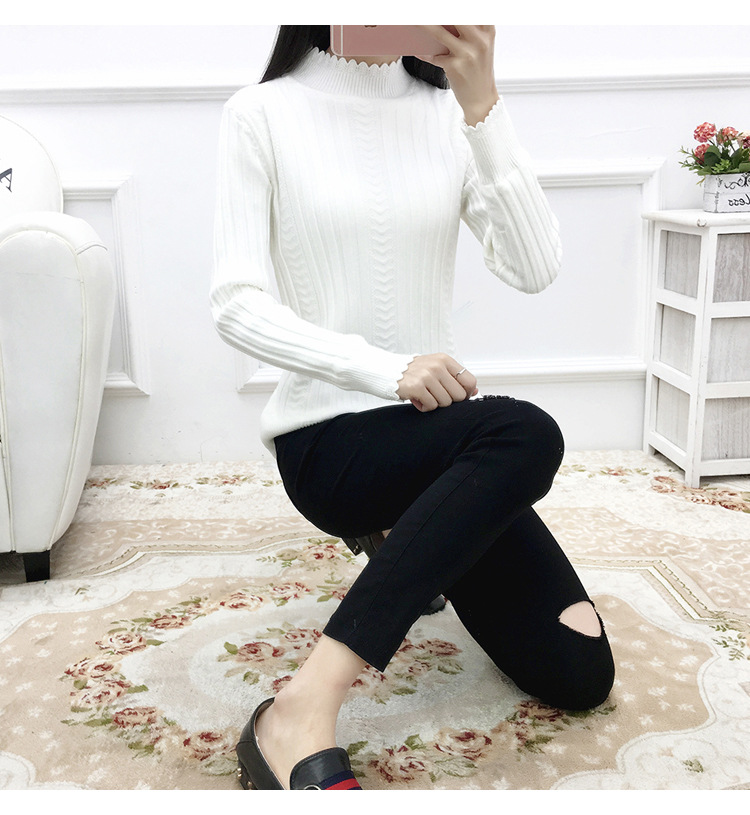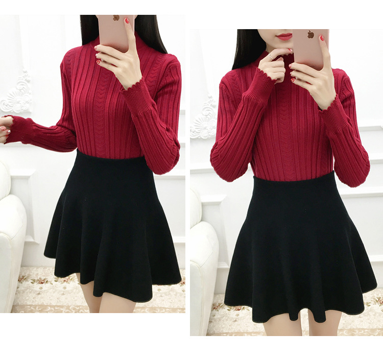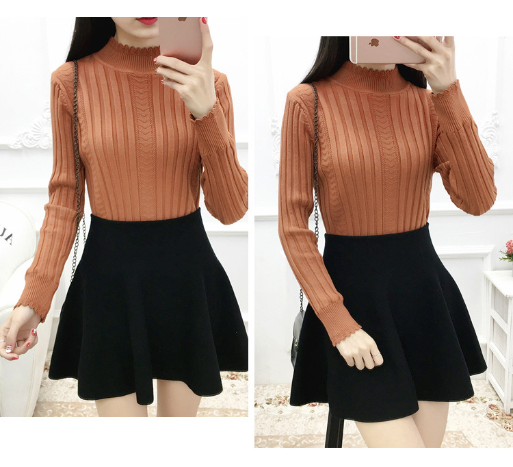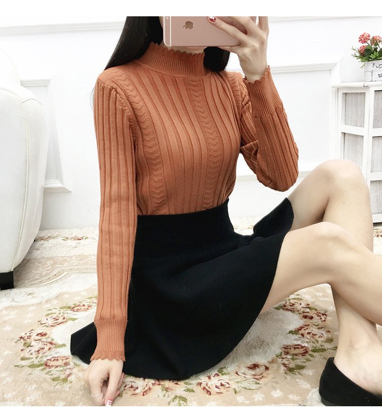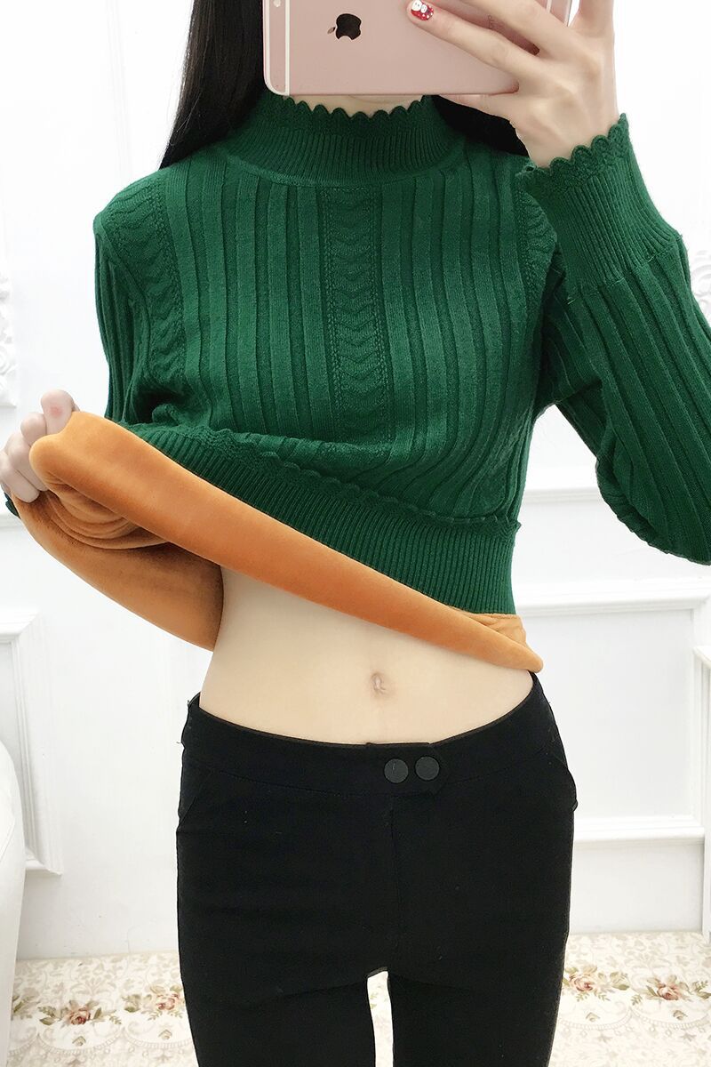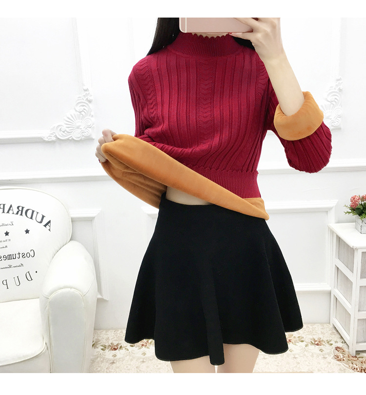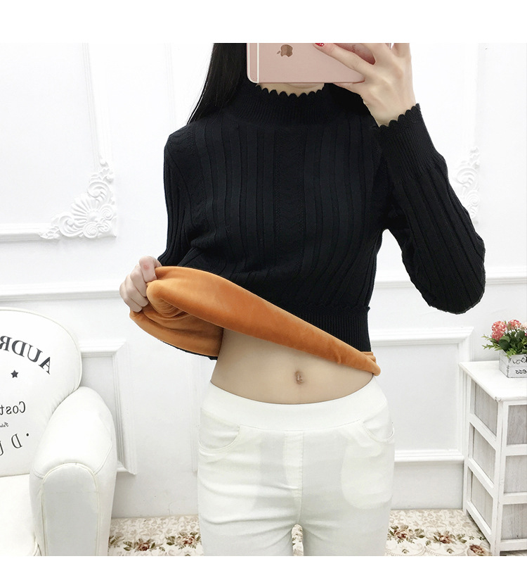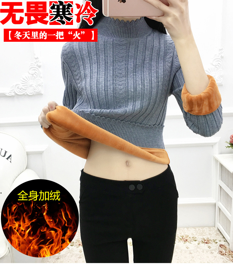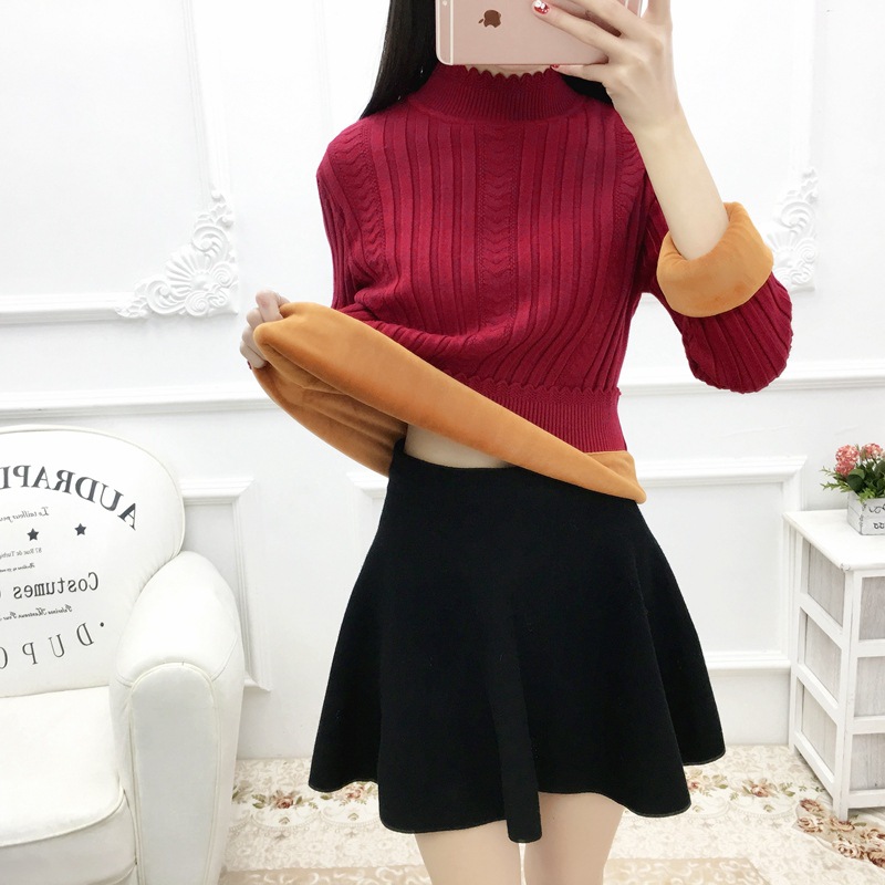 기모 스웨터 여자의 가을과 겨울 풀오버 겉옷 두꺼운 새로운 세미 하이 칼라 니트 따뜻한 의류 내부 기본 셔츠 도매스토어 가기