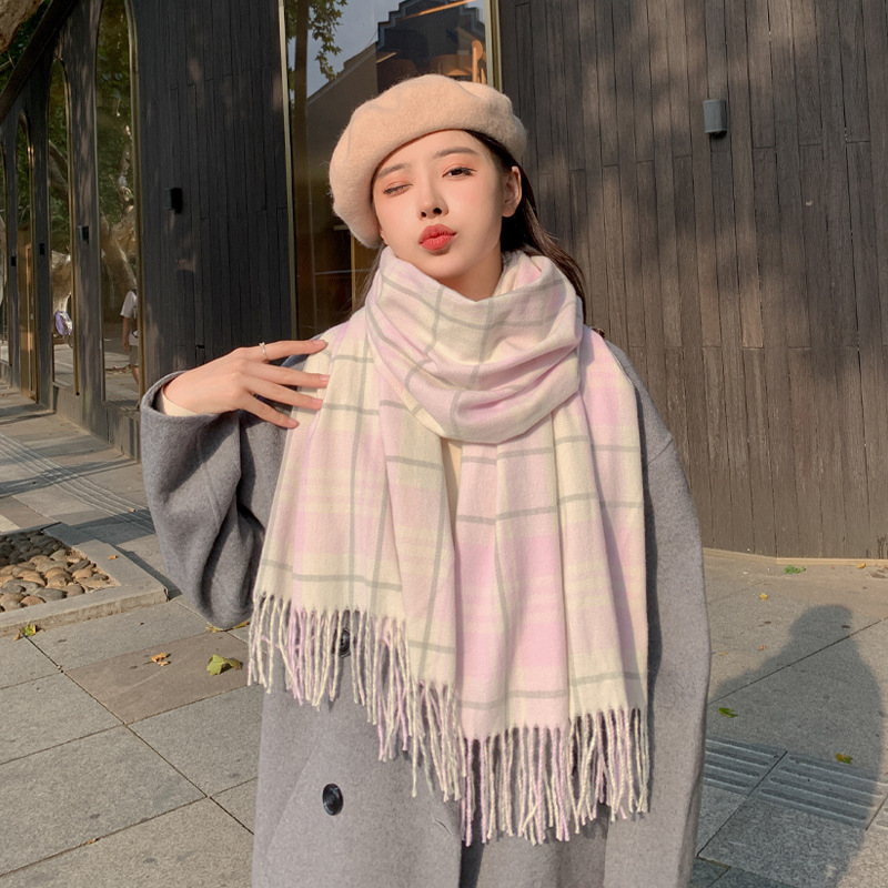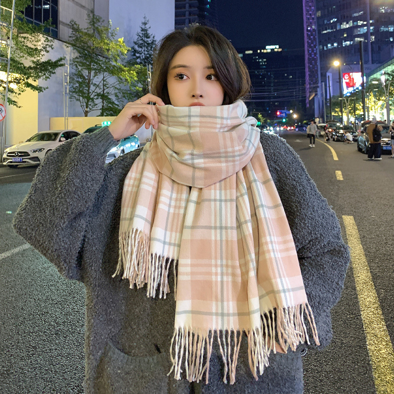 2022 새로운 영국 아카데미 스타일 캐시미어 격자 무늬 술 스카프 여성용 일본과 한국 줄무늬 여성용 커플 스카프스토어 가기