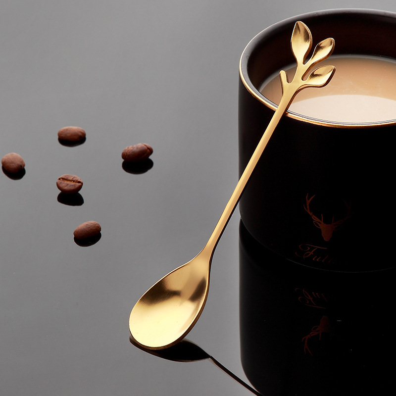 손 선물 숟가락 잎 숟가락 도매 스테인레스 스틸 창조적 인 숟가락 잎 숟가락 황금 숟가락 디저트 커피 믹싱 스푼스토어 가기