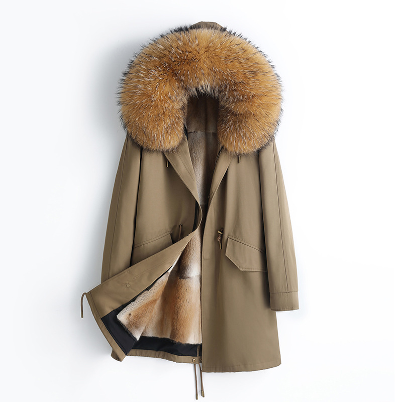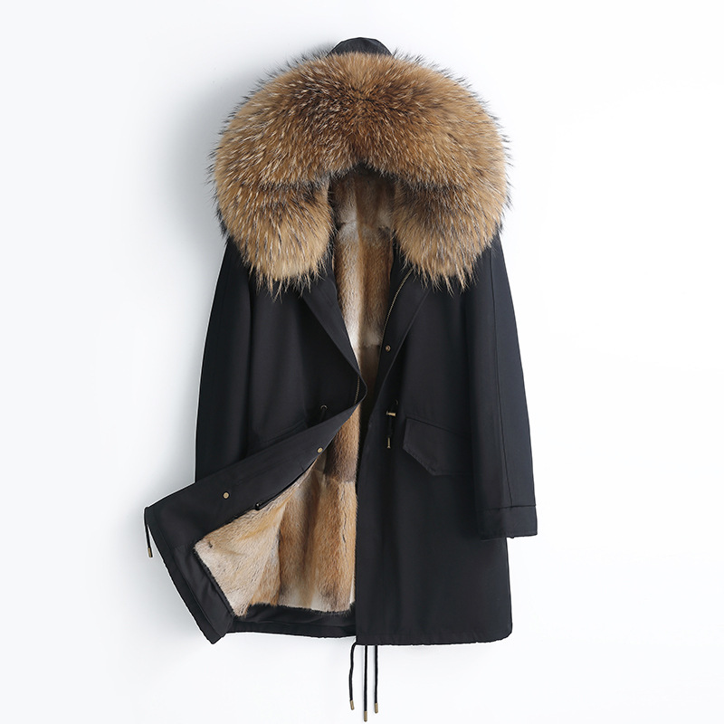 수입 아메리카 너구리 모피 칼라 파카 남성용 2025 겨울 신상품 밍크 모피 안감 탈부착 가능스토어 가기