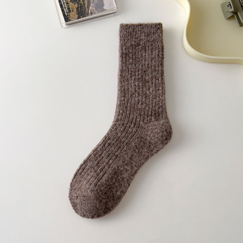 Suxinaimin 일본식 드로잉 스트립 양말 가을과 겨울 두꺼운 단색 따뜻한 울 중간 길이 양말 레트로 스택 양말 여성용
