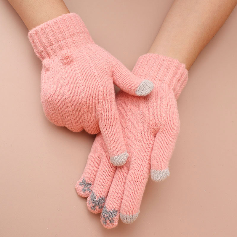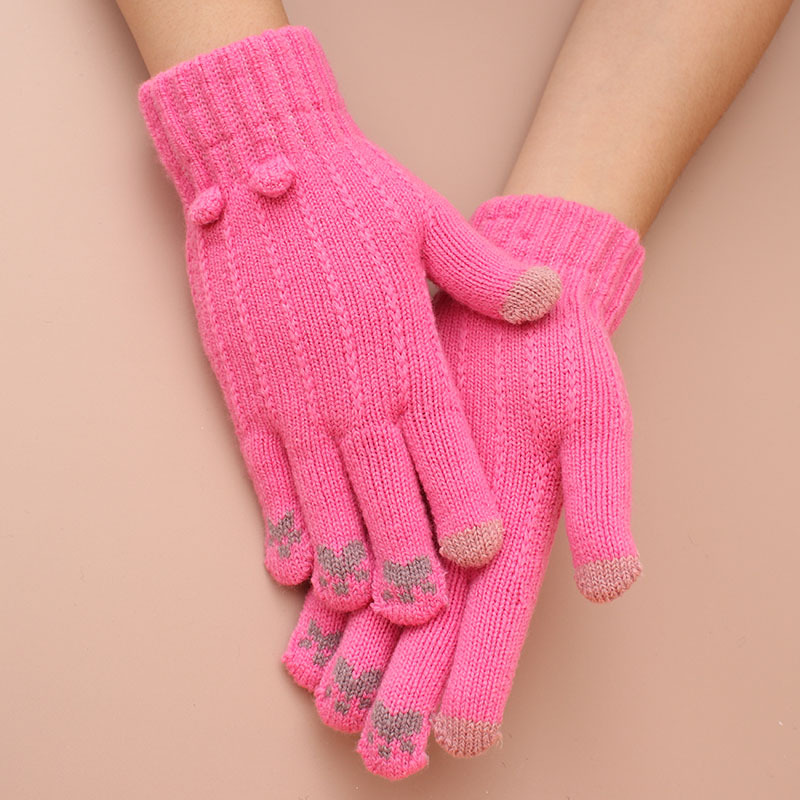 신제품 겨울용 따뜻한 여성용 터치스크린 용품 내부 플리스 자카드 귀여운 고양이 니트 장갑