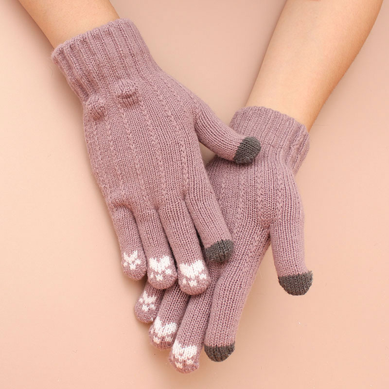 신제품 겨울용 따뜻한 여성용 터치스크린 용품 내부 플리스 자카드 귀여운 고양이 니트 장갑스토어 가기